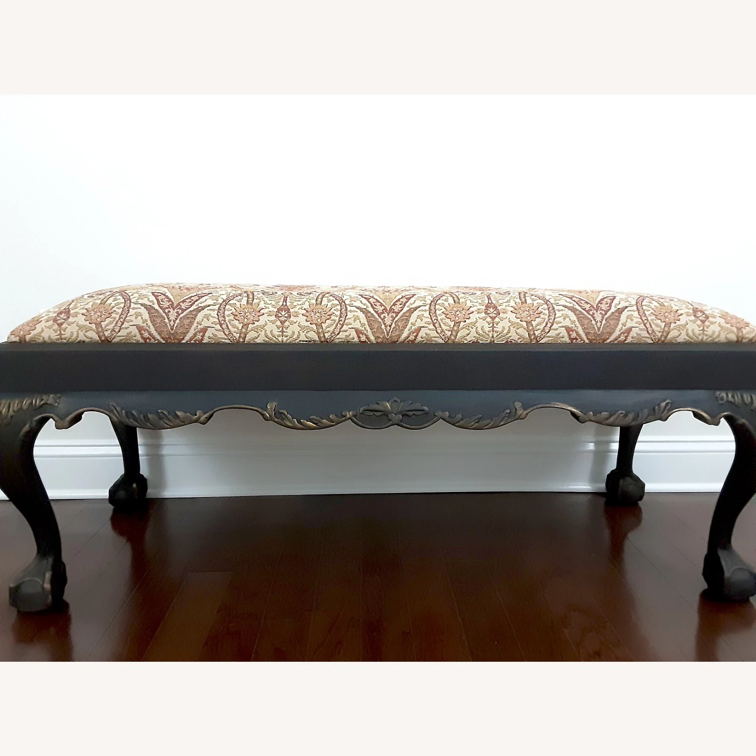 Seller’s Notes: Antique Clawfoot Bench. Upholstered Bench. Vintage Victorian Entryway Bench. French Country Bedroom Bench. Chippendale Dining Room Bench