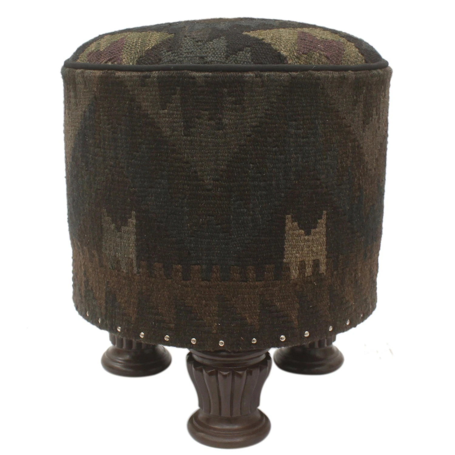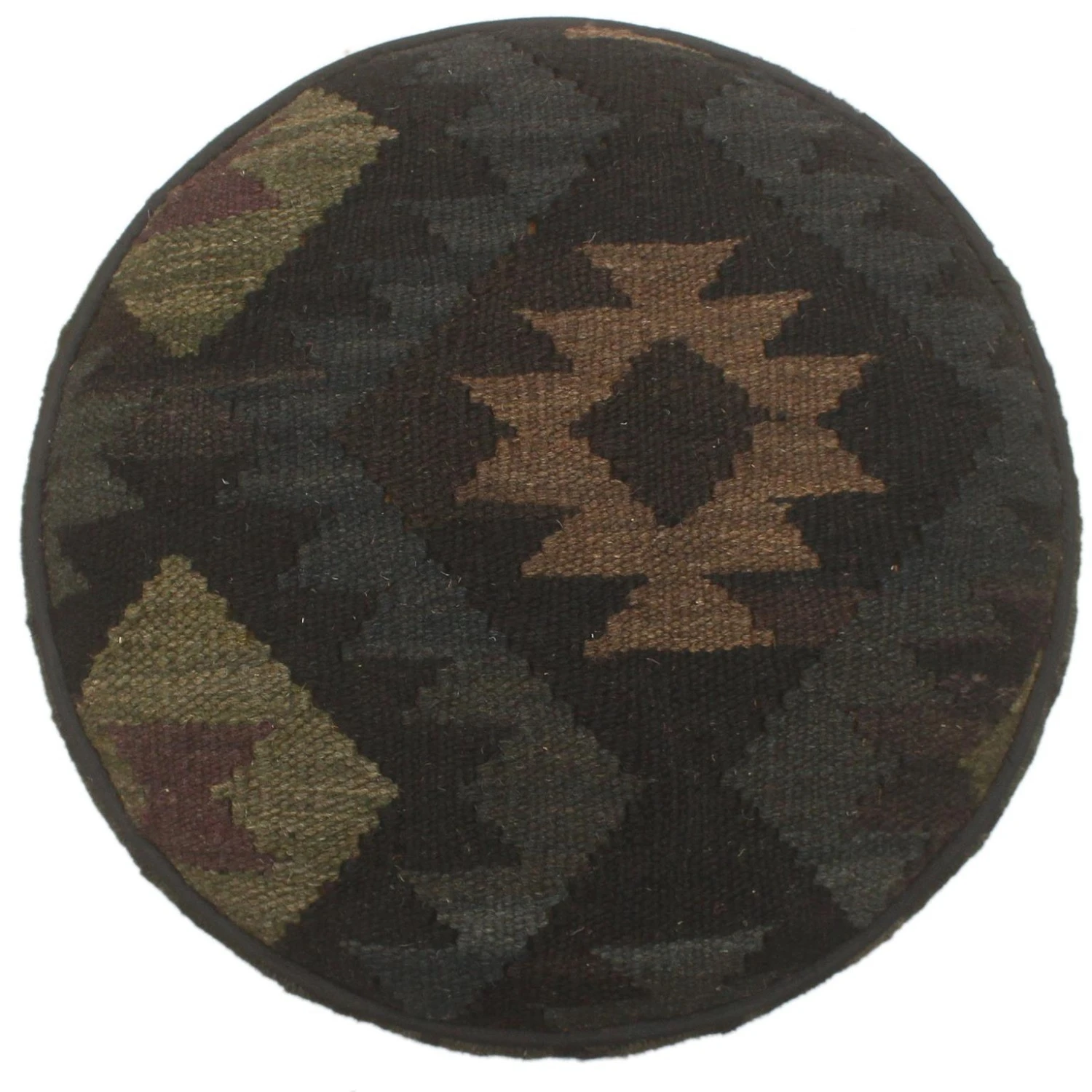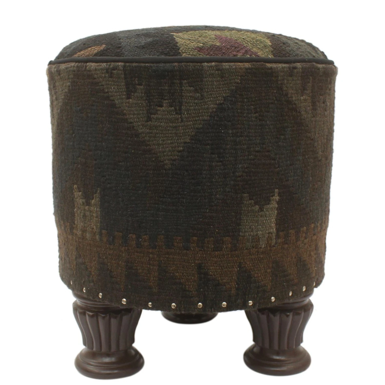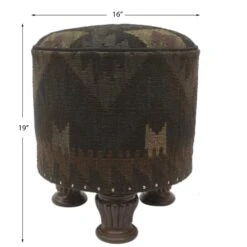 Seller’s Notes: Stylish sophisticated and out of ordinary handmade round ottoman crafted by skilled artisans using vegetable dyed hand-woven Tribal Kilim wool rug and wood is a multi-purpose fashion pouf which will add dimension, color and style to your dรฉcor. Inspired by geometric motifs in any array of effervescent color pallet grounds any space with elegance and sophistication.