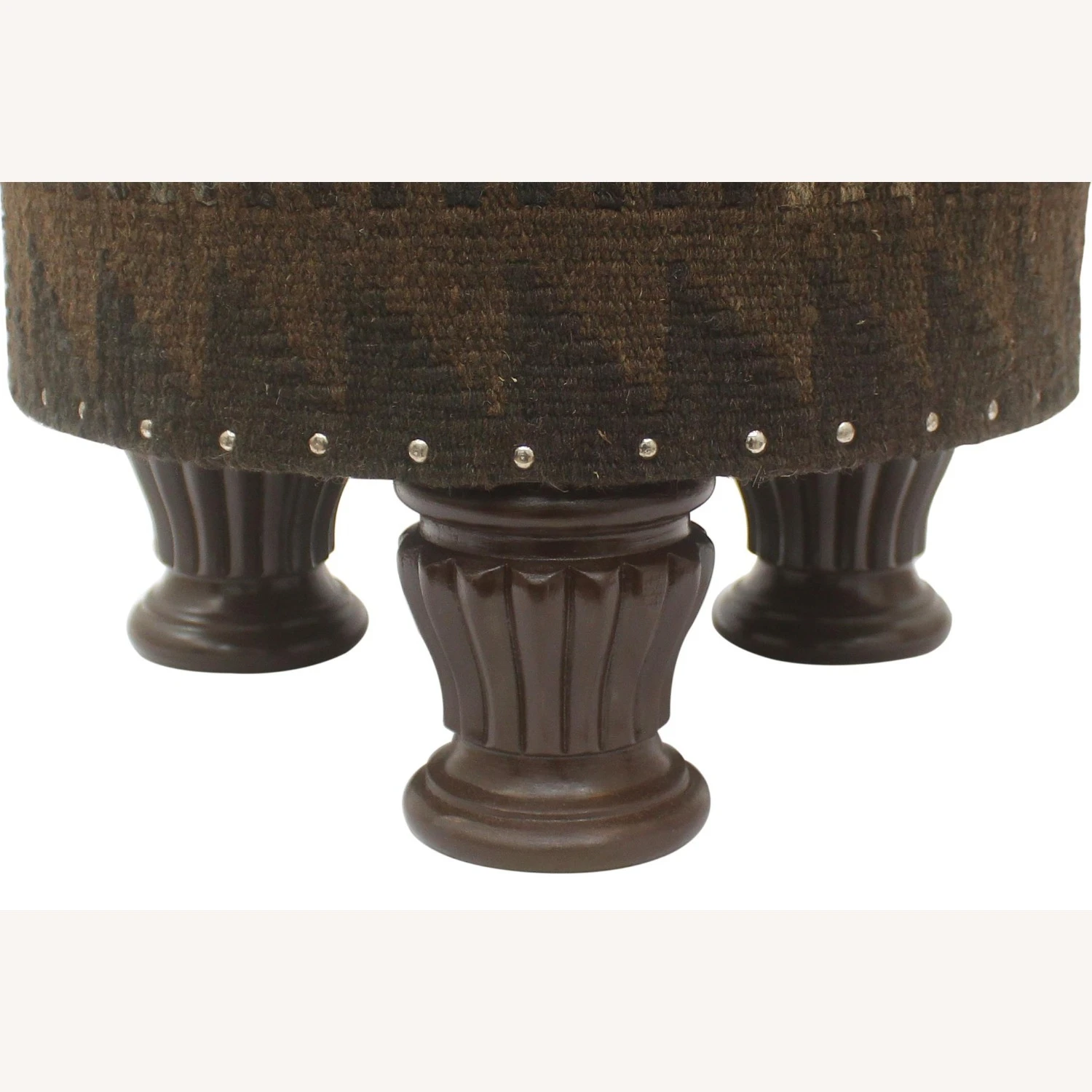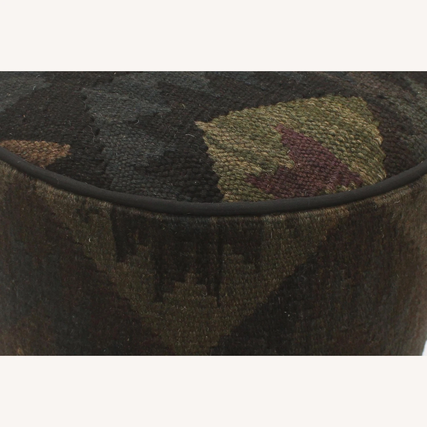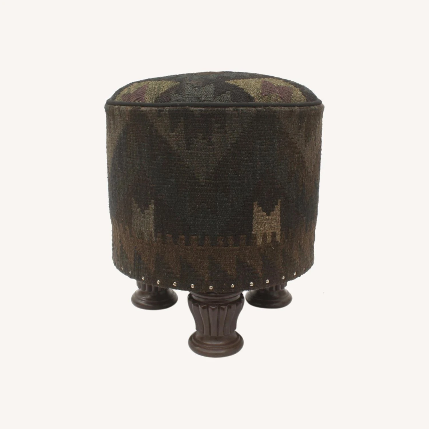 Seller’s Notes: Stylish sophisticated and out of ordinary handmade round ottoman crafted by skilled artisans using vegetable dyed hand-woven Tribal Kilim wool rug and wood is a multi-purpose fashion pouf which will add dimension, color and style to your dรฉcor. Inspired by geometric motifs in any array of effervescent color pallet grounds any space with elegance and sophistication.