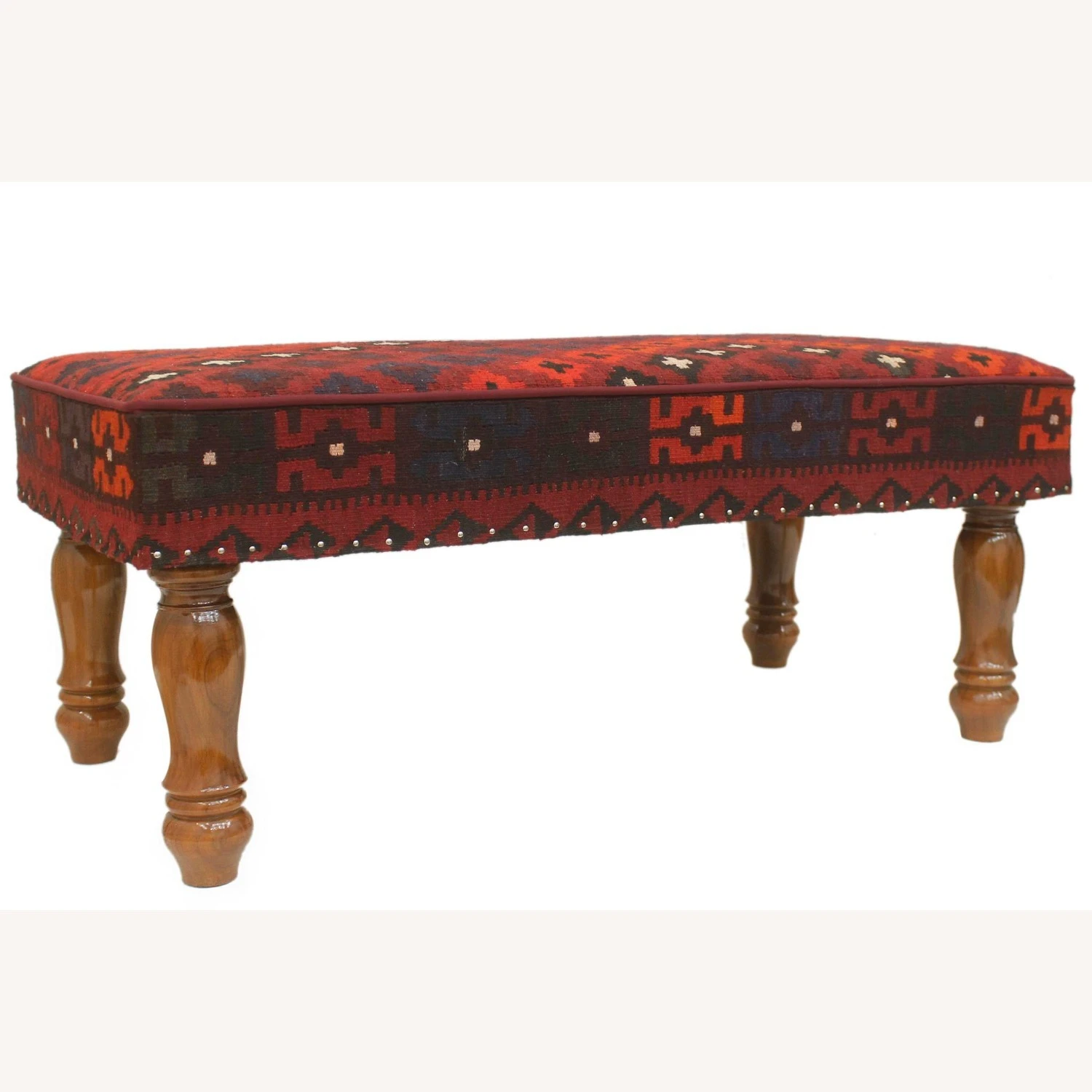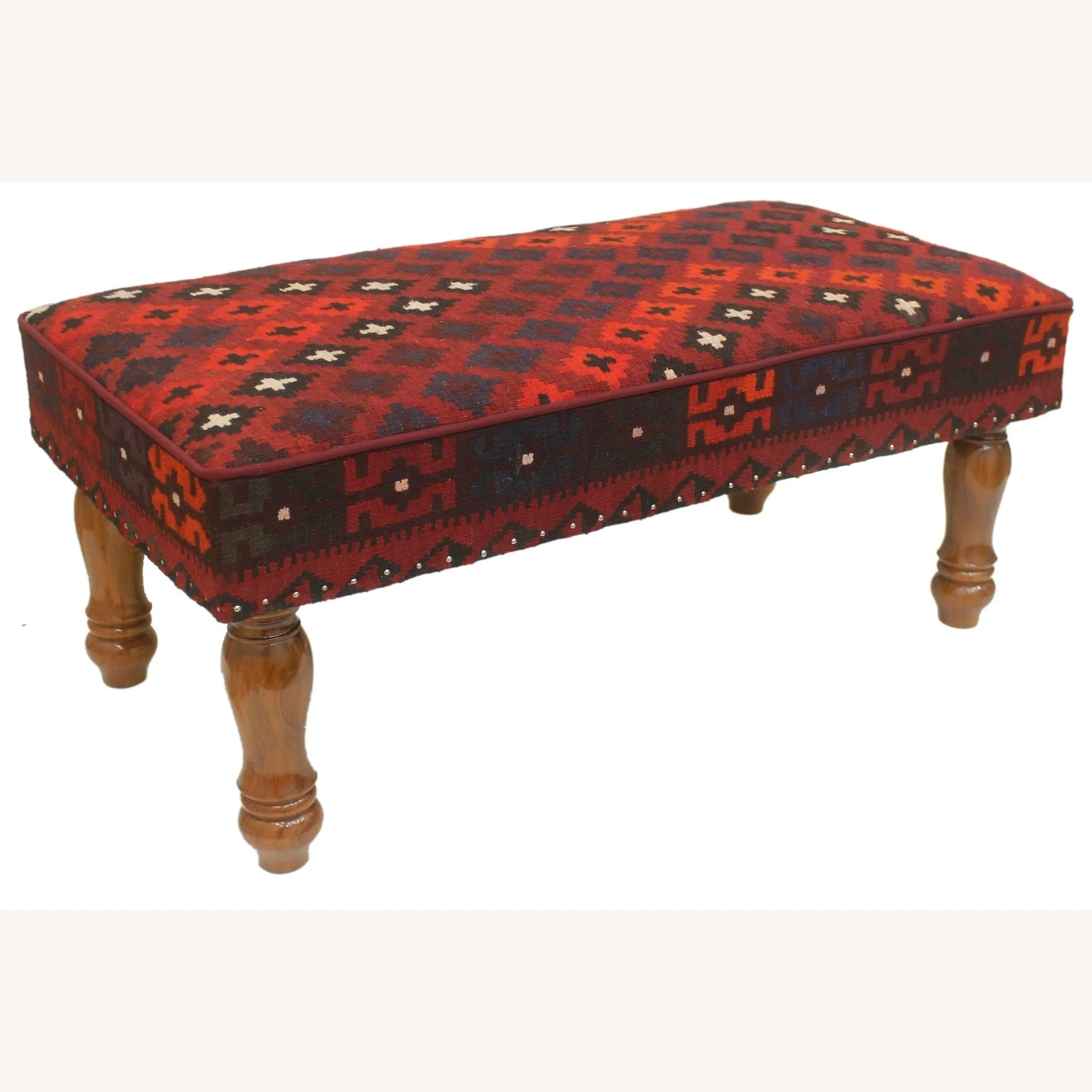 Seller’s Notes: Stylish sophisticated and out-of-ordinary handmade Settee crafted by skilled artisans using vegetable-dyed hand-woven Tribal Kilim Upholstered Settee and wood is a multi-purpose fashion statement, which will add dimension, color, and style to your décor. Inspired by geometric motifs in any array of effervescent colors pallet grounds any space with elegance and sophistication.