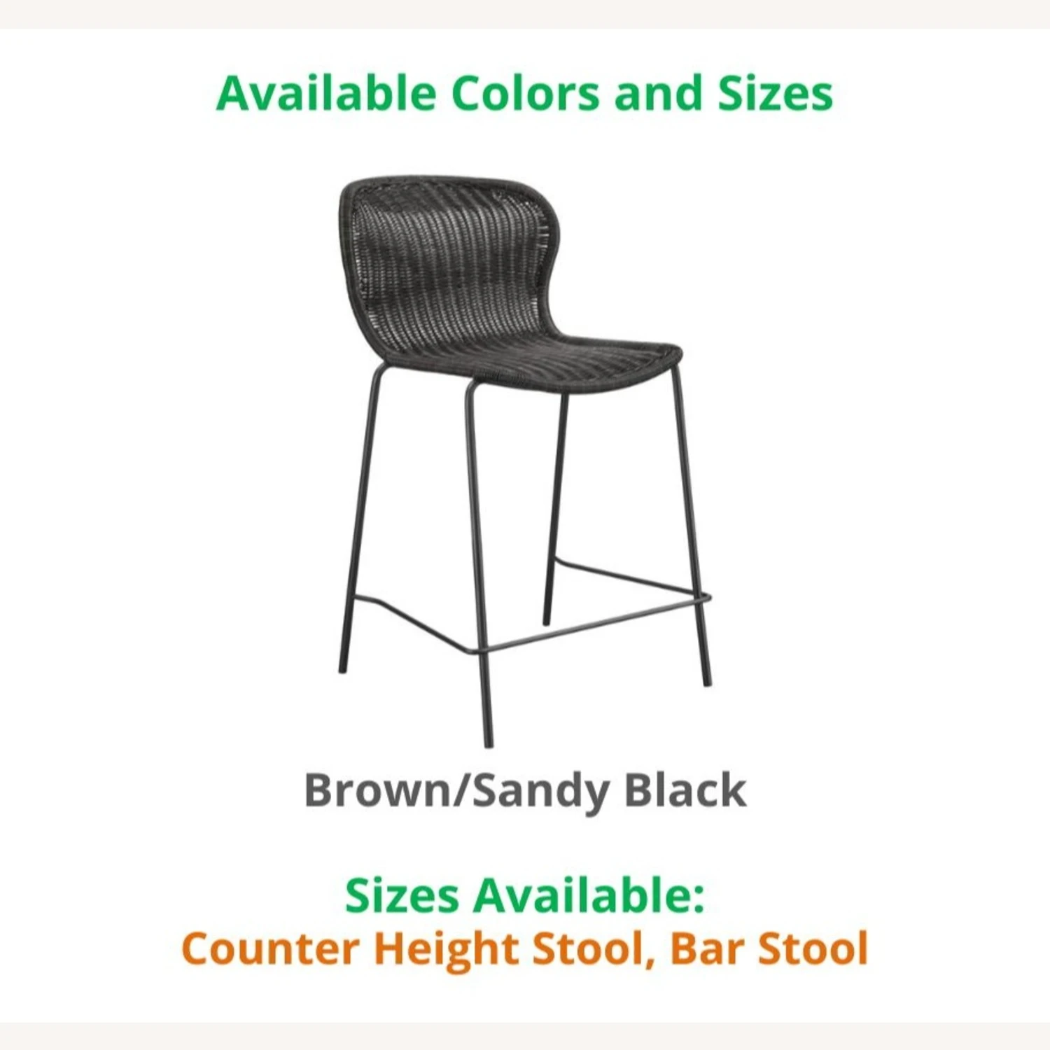 This model comes in this BROWN/SANDY BLACK, and sizes bar stool and counter stool. If you are interested in a color/size other than that of this listing, and if the quantity you wish to purchase is greater than what is listed here, please message us for availability.