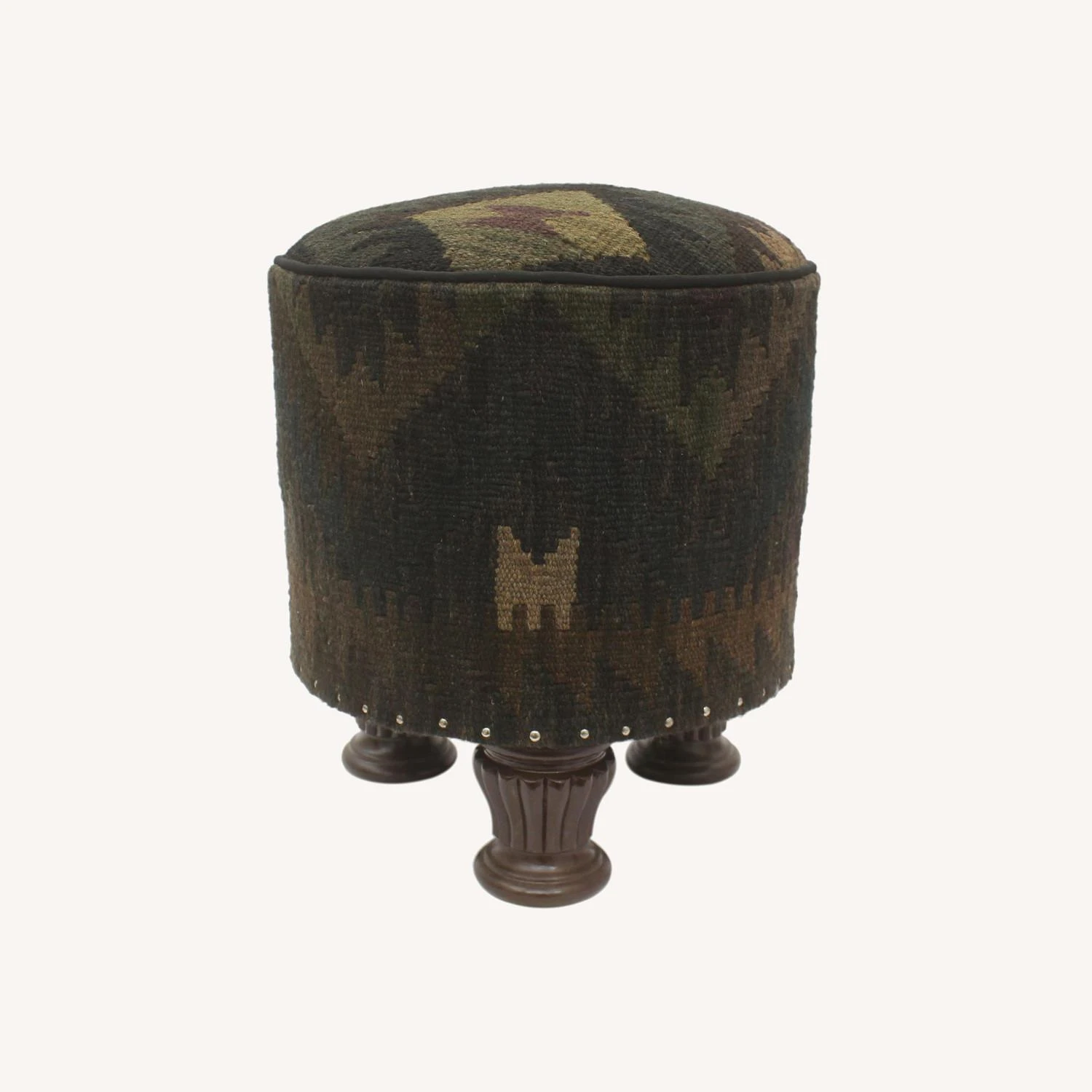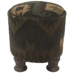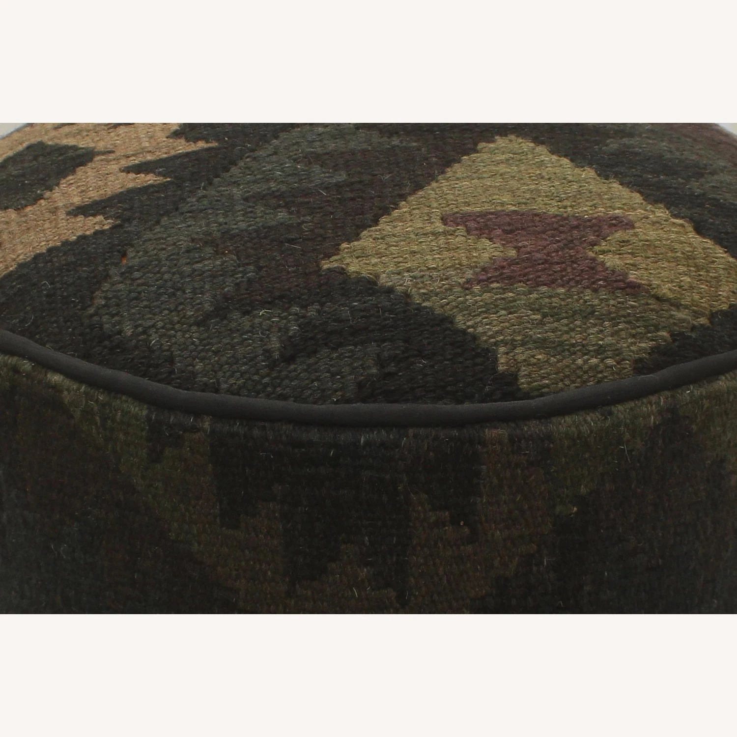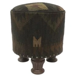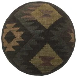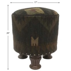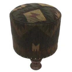Seller’s Notes: Stylish classy and out-of-ordinary handmade round pouf ottoman crafted by skilled artisans using vegetable-dyed hand-woven Kilim wool rug and high-quality wood. This multipurpose fashionable footstool will add dimension, color, and style to your décor – inspired by geometric motifs in any array of effervescent color pallets. This breathtaking pouf grounds any space with elegance and sophistication.