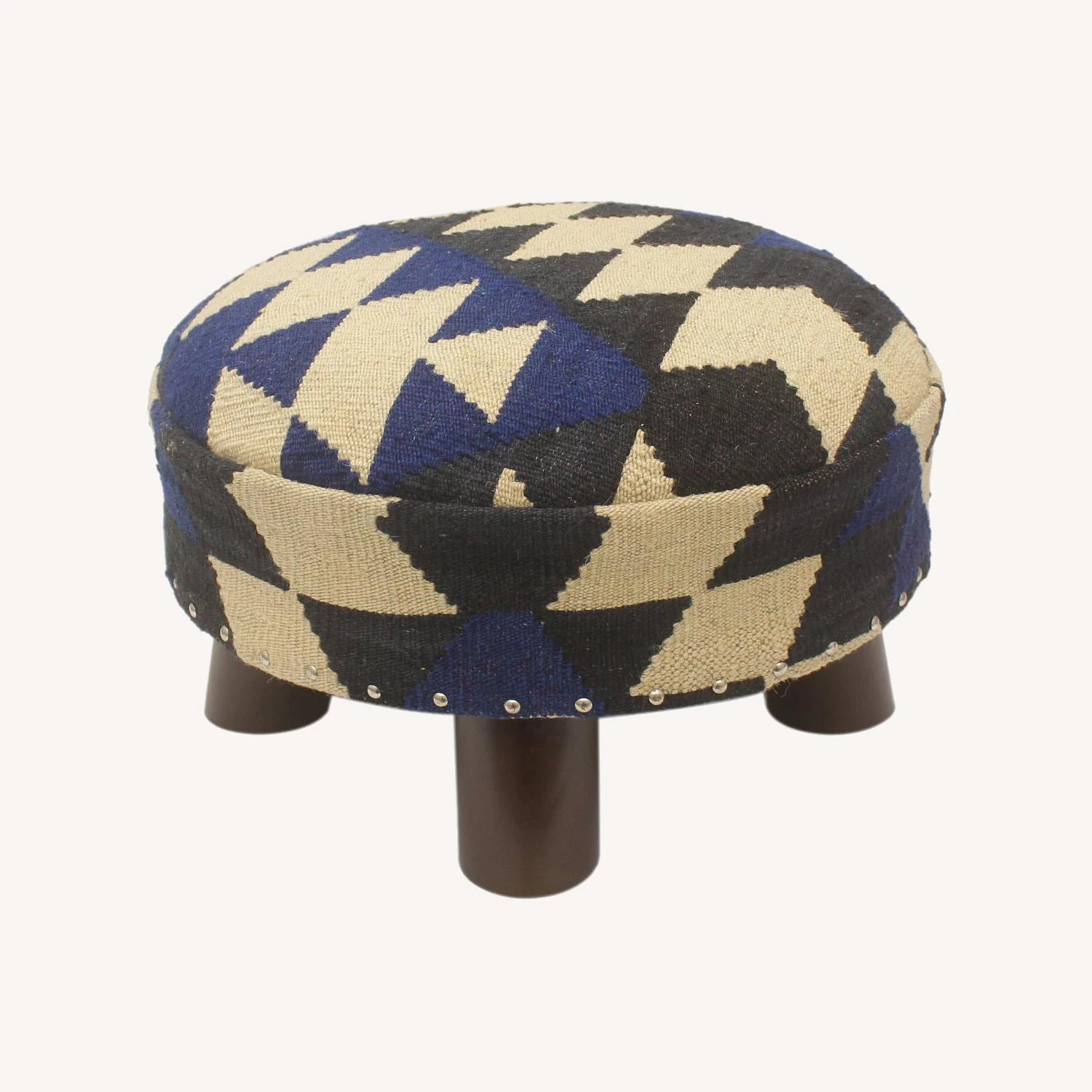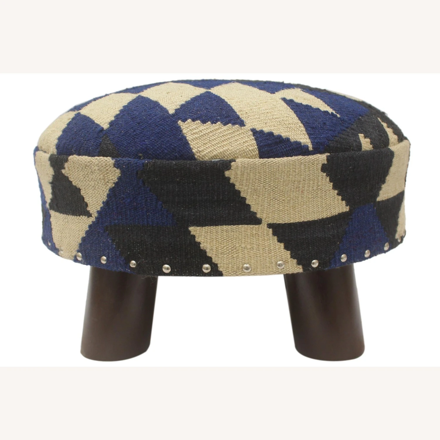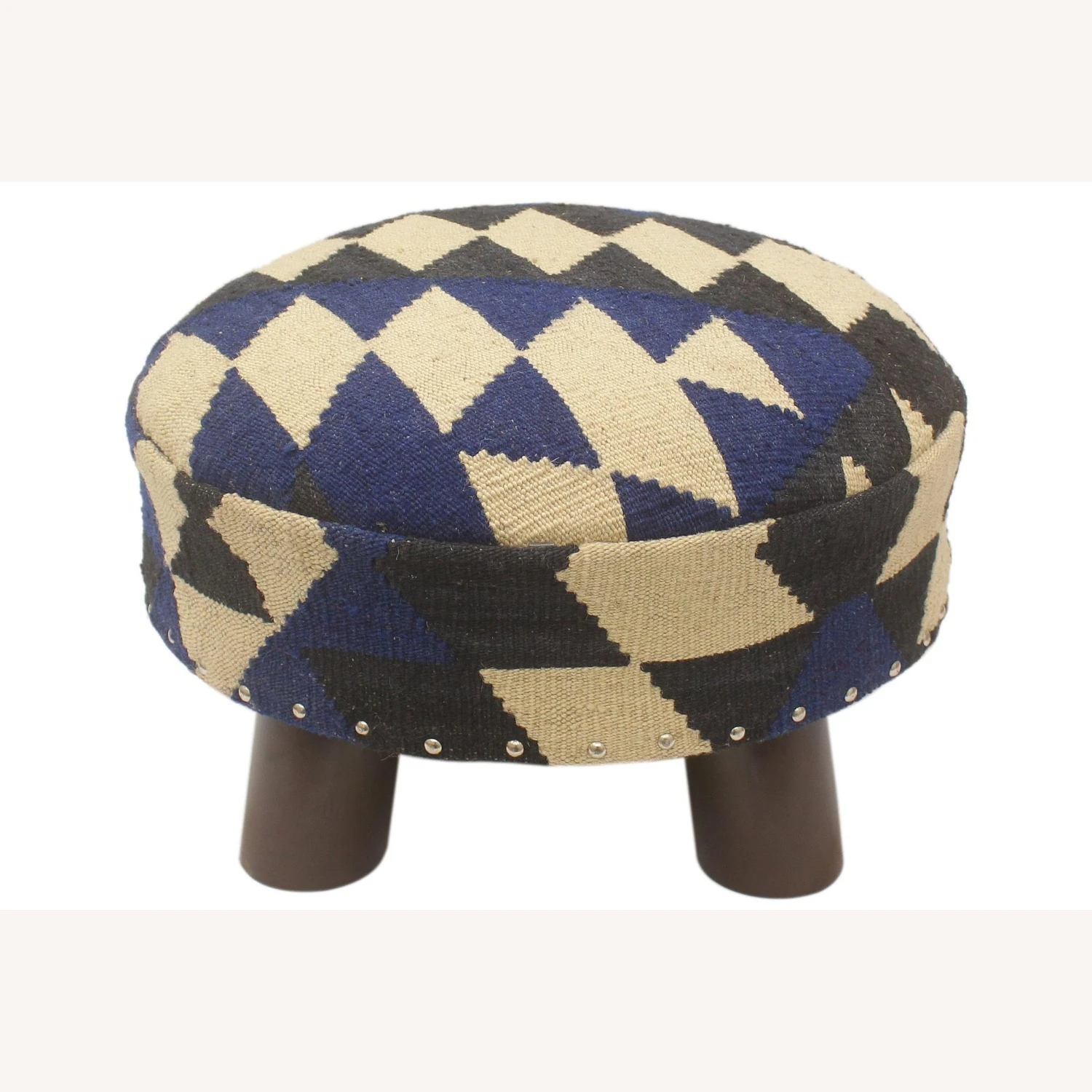 Seller’s Notes: Stylish classy and out-of-ordinary handmade round pouf ottoman crafted by skilled artisans using vegetable-dyed hand-woven Kilim wool rug and high-quality wood. This multipurpose fashionable footstool will add dimension, color, and style to your décor – inspired by geometric motifs in any array of effervescent color pallets. This breathtaking pouf grounds any space with elegance and sophistication.