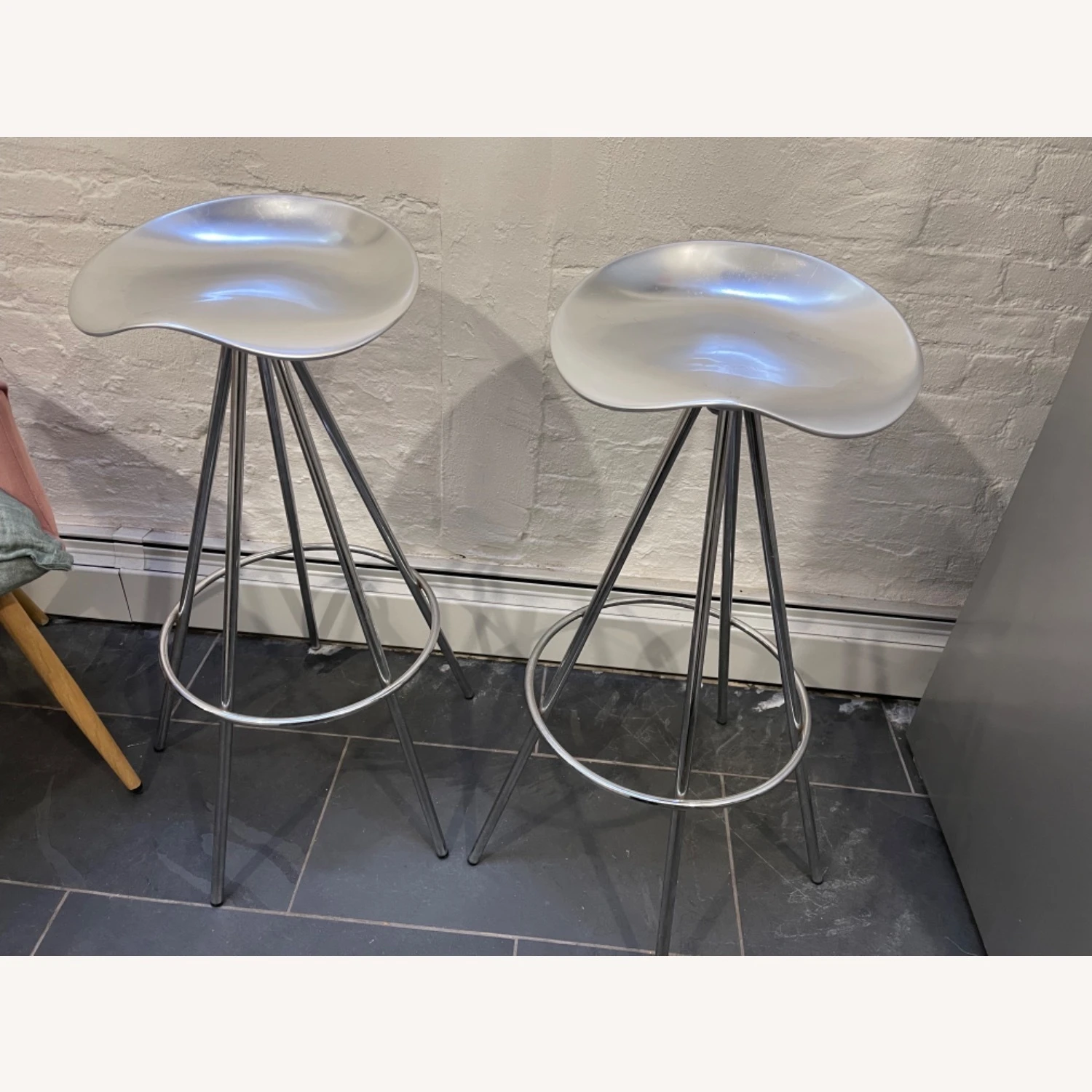Seller’s Notes: Pepe Cortes Jamaica Bar Stools- stool with chromed steel structure and swivel seat. Metal chrome stool, with shaped “seat” for ultimate comfort. Sleek chrome metal. Heavy weight and stable seat that swivels. Bar stool height.