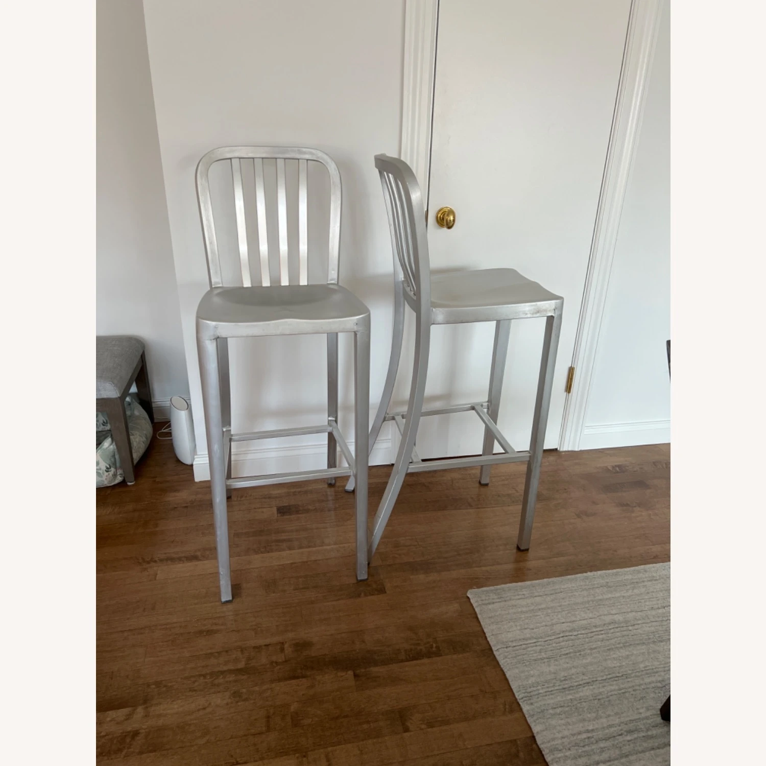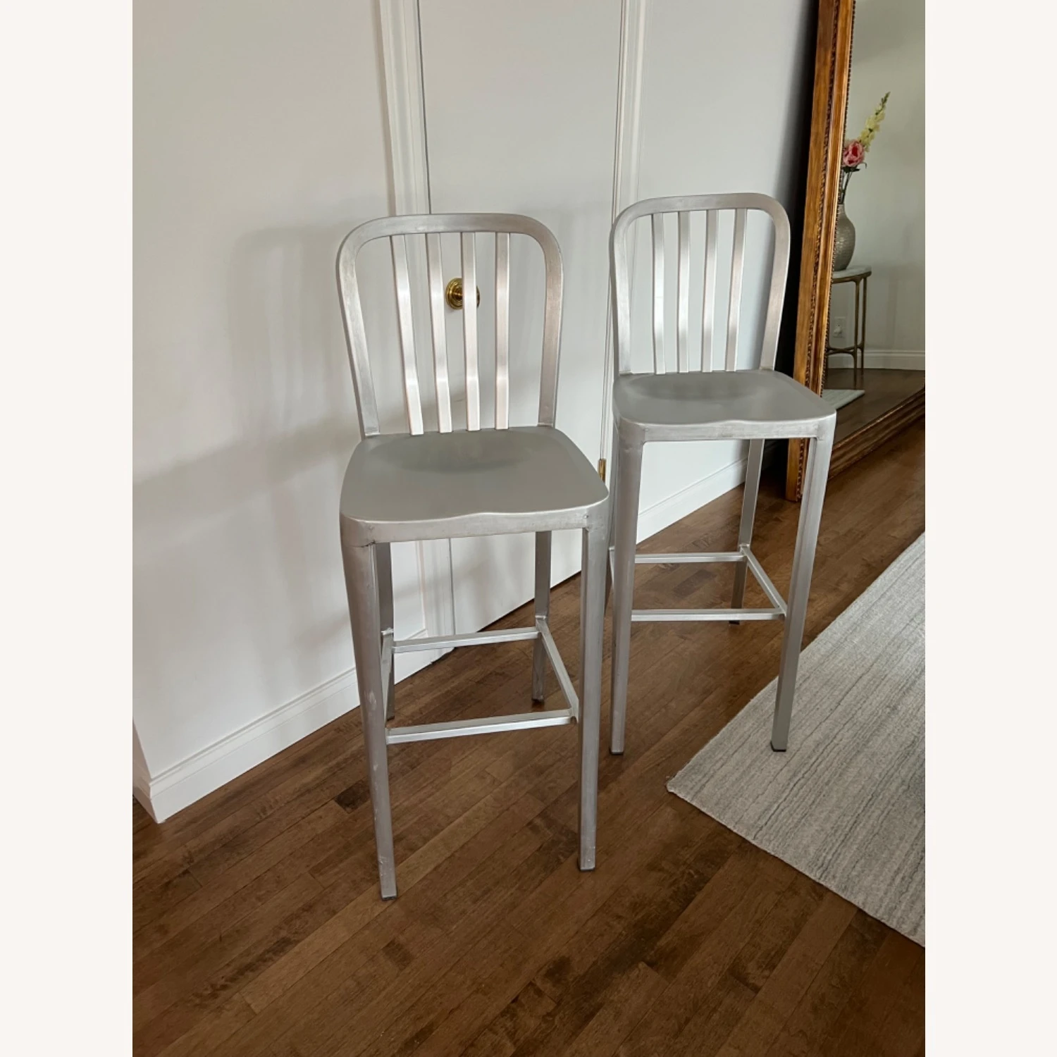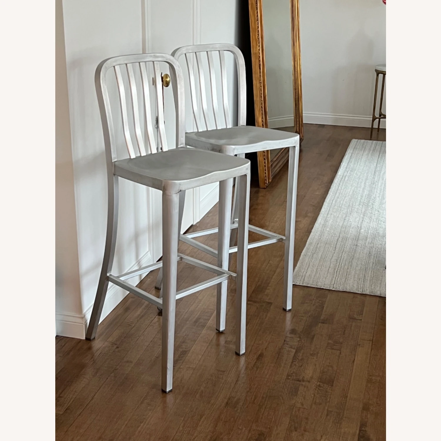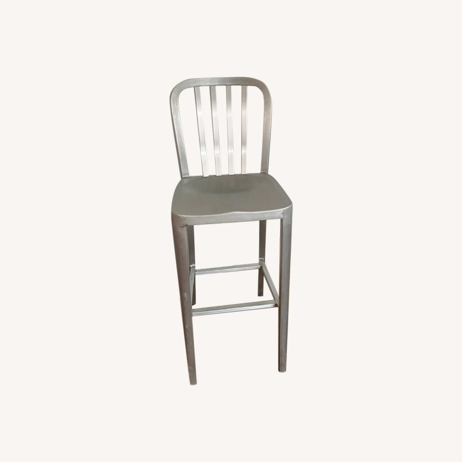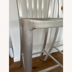 Delta features straightforward styling in pure aluminum, anodized for a sleek, durable finish. Classic and contemporary, the stool has a casual look that mixes well with metal, wood or glass furnishings. Crafted of machine-cut anodized aluminum, each sturdy yet lightweight stool is welded together and hand polished to a soft sheen. The contoured back and molded seat ensure a comfortable sit.