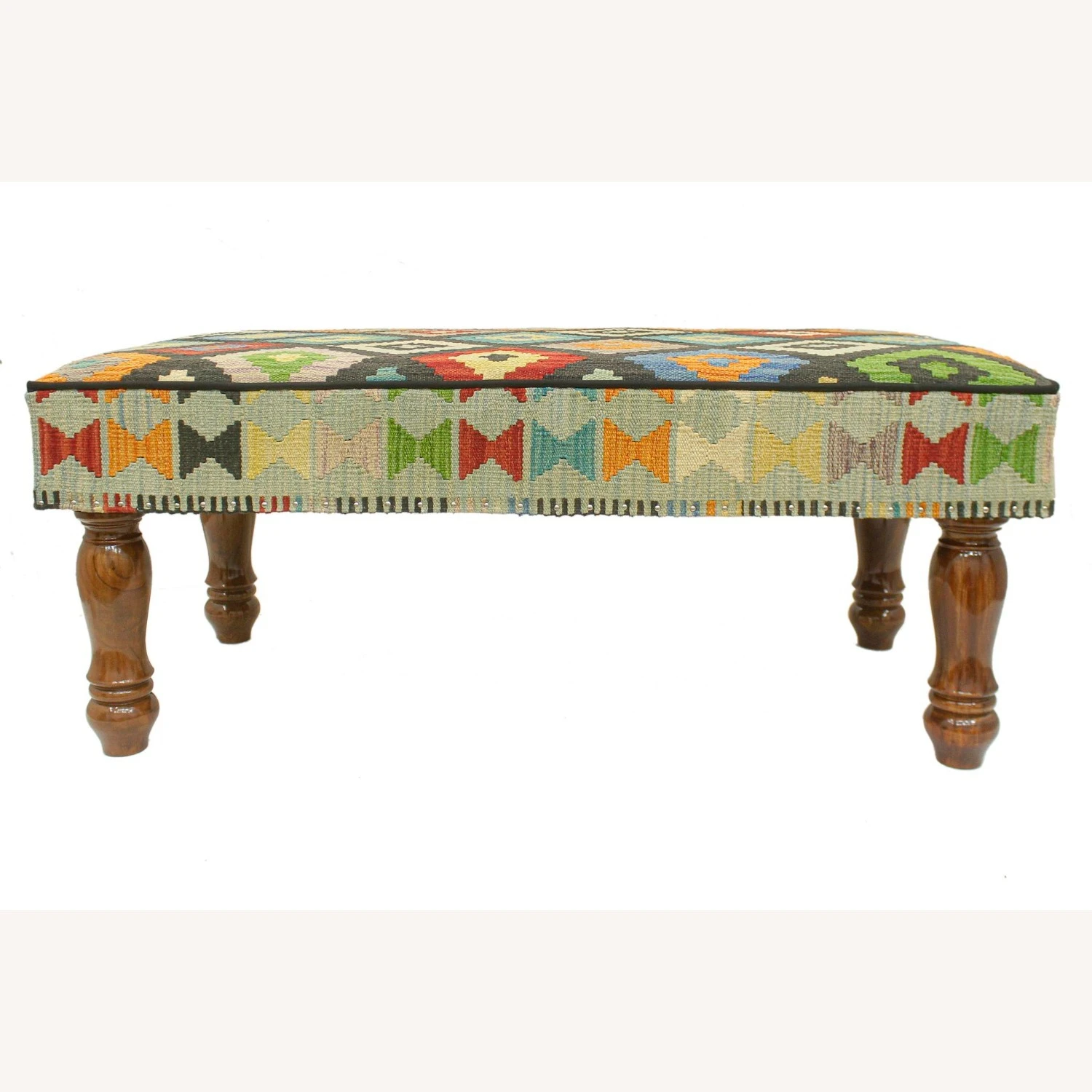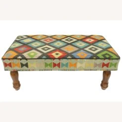 Seller’s Notes: Stylish sophisticated and out-of-ordinary handmade Settee crafted by skilled artisans using vegetable-dyed hand-woven Tribal Kilim Upholstered Settee and wood is a multi-purpose fashion statement, which will add dimension, color, and style to your décor. Inspired by geometric motifs in any array of effervescent colors pallet grounds any space with elegance and sophistication.