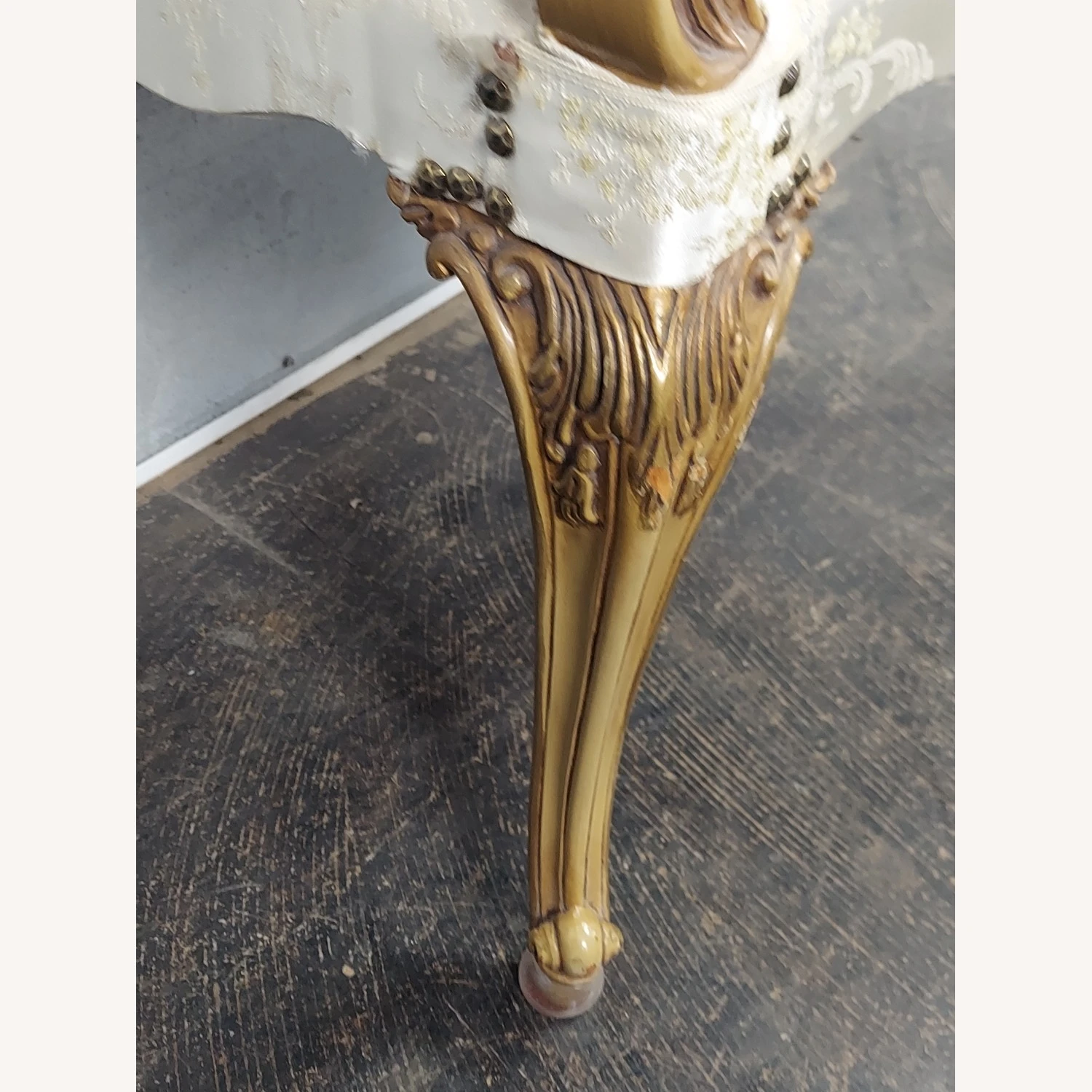 Seller’s Notes: This bench is in excellent condition. It is newly upholstered and has carved sides and legs. This bench is beautiful.
