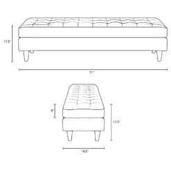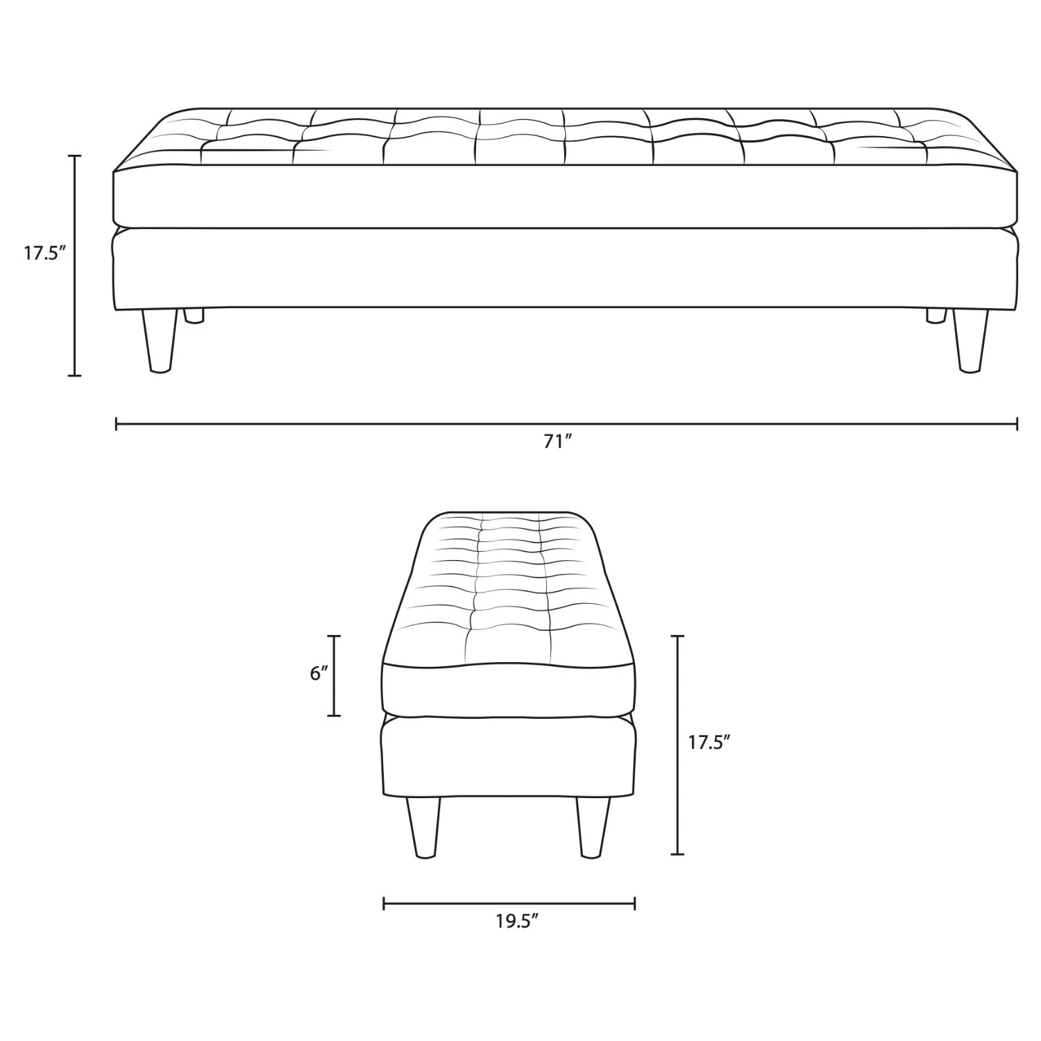 Overall Dimensions: Width: 71 inches, Height: 17.5 inches, Depth: 19.5 inches