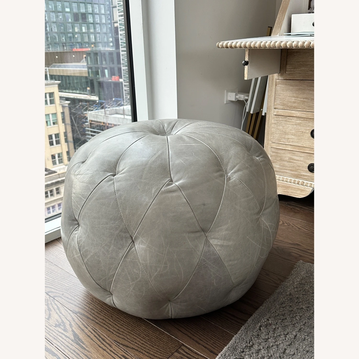 Seller’s Notes: Tufted, leather pouf. Perfect for so many things.