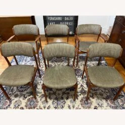 Seller’s Notes: Mid-Century Modern Dining Chair Set – 4 Side chairs; 2 End chairs. Matching table listed separately.