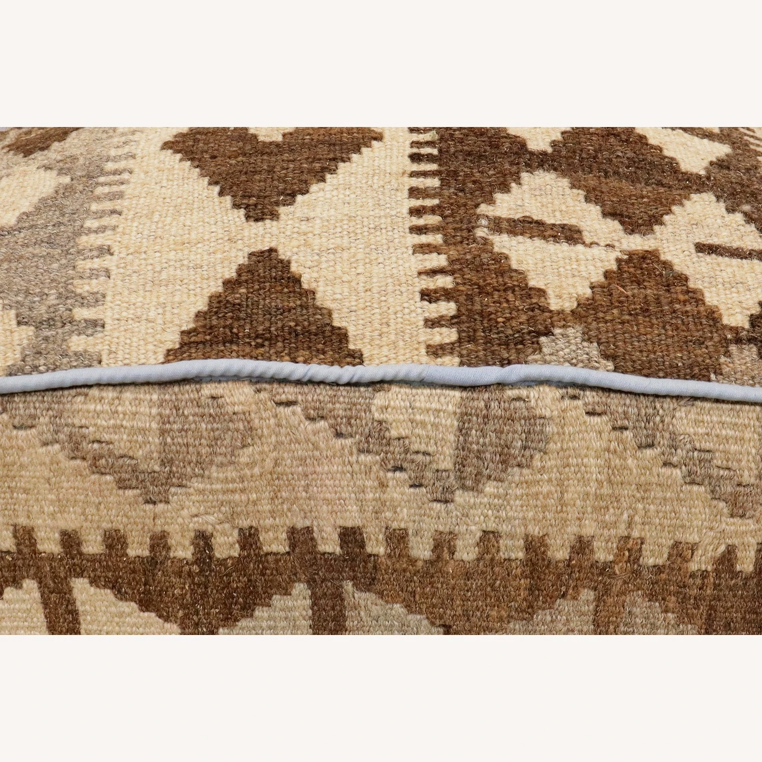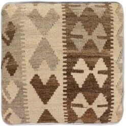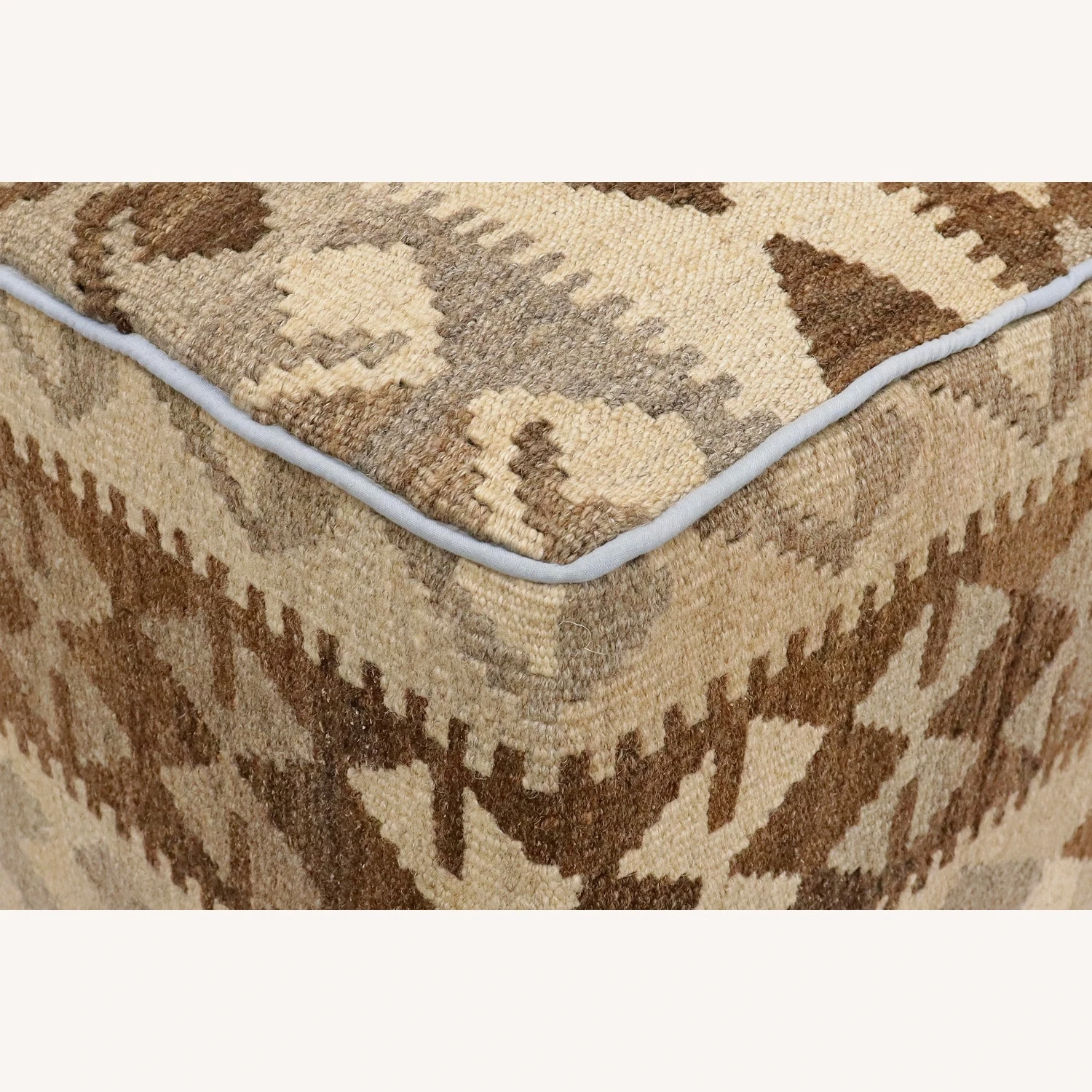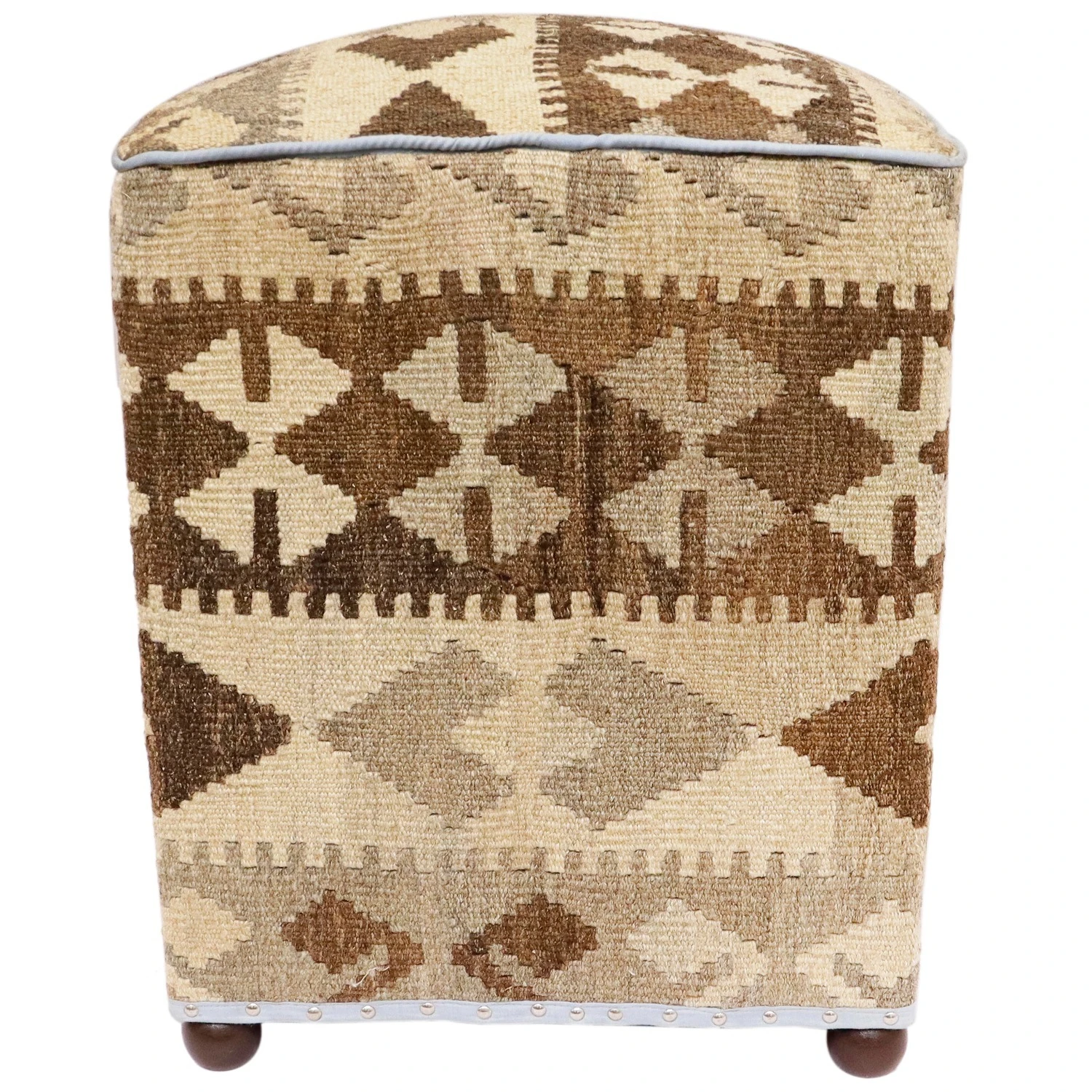 Seller’s Notes: Chic handmade ottoman crafted using wood and upholstered using hand-woven kilim wool rug is a multi-purpose fashion pouf which will add dimension, color and style to your decor. Inspired by geometric motifs in any array of effervescent color pallet grounds any space with elegance and sophistication.
