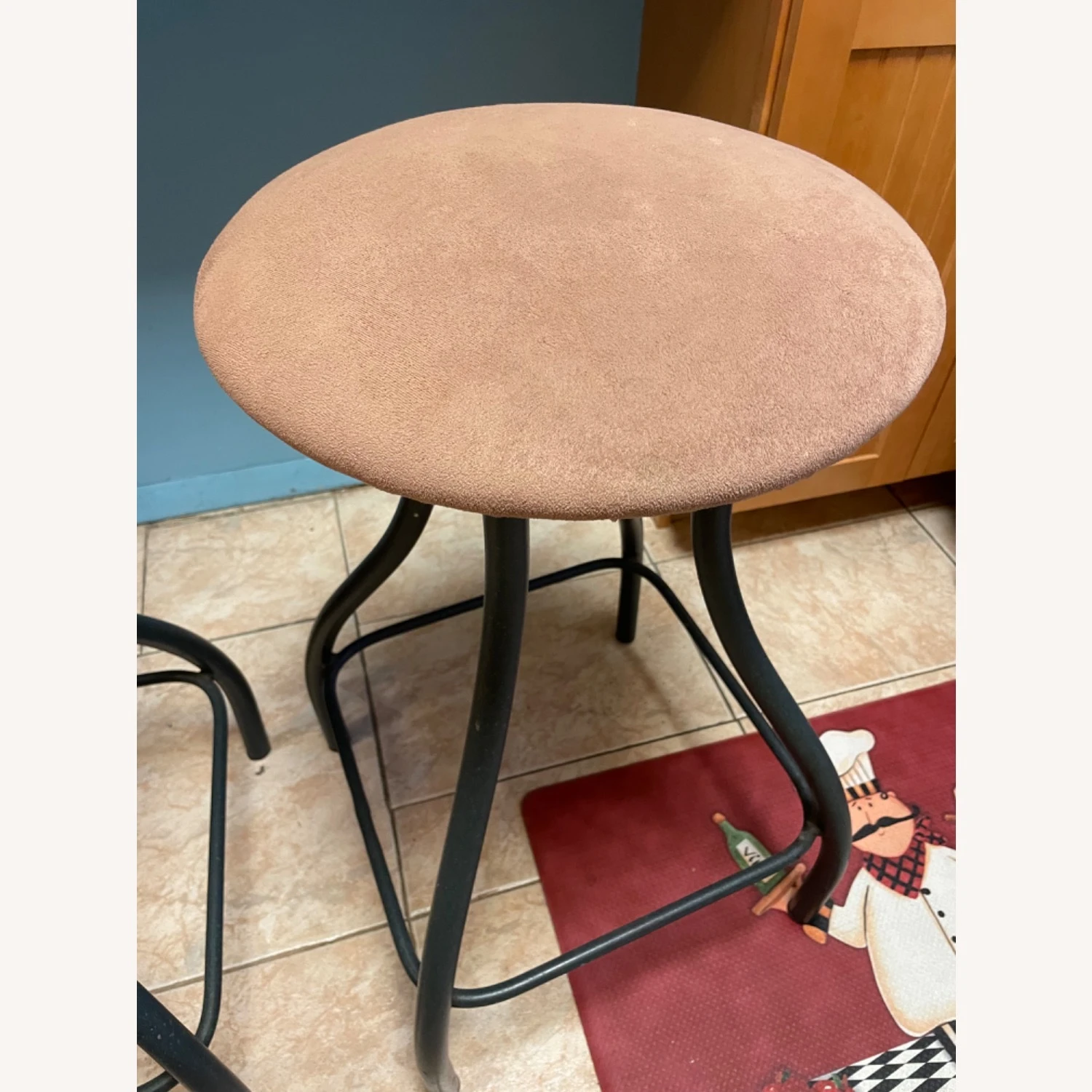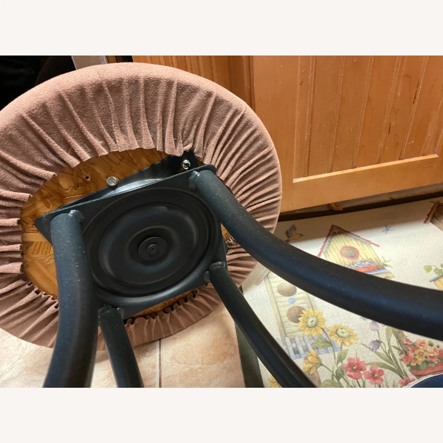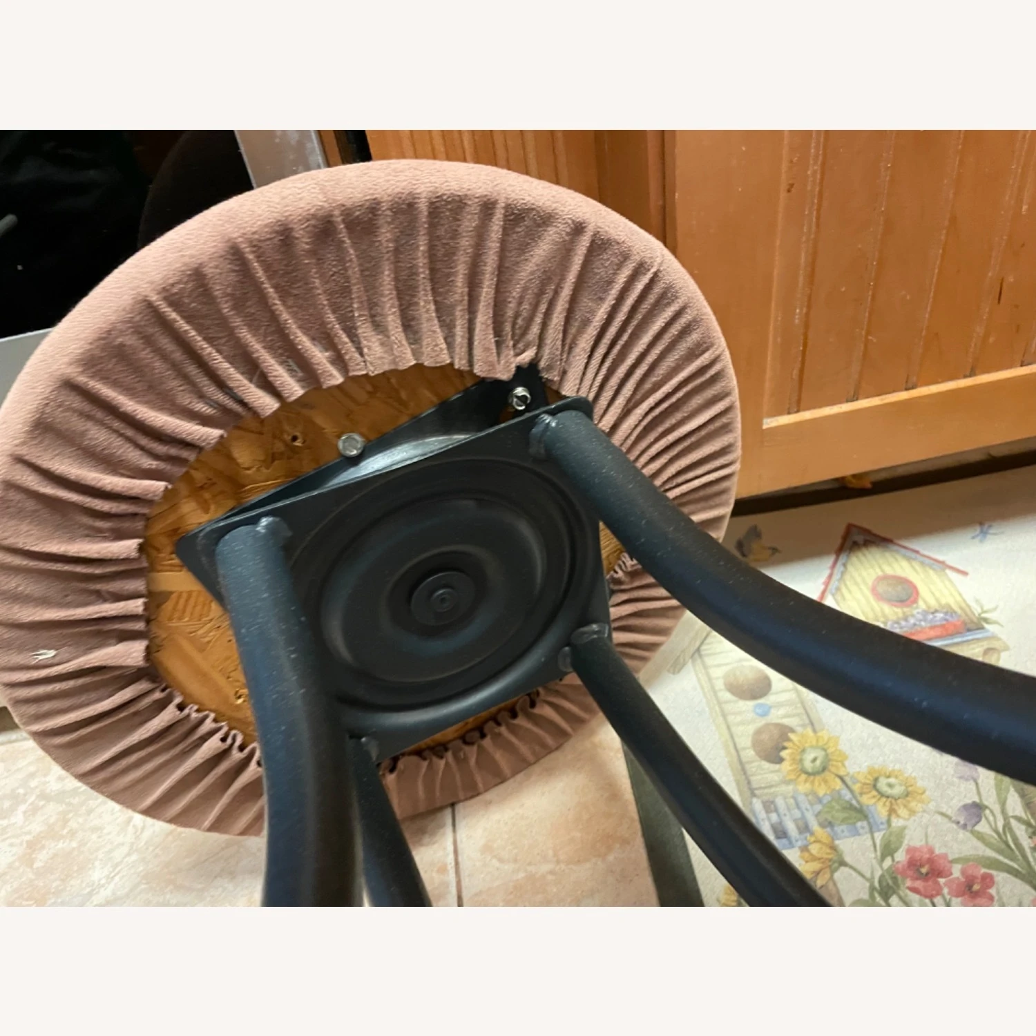 Seller’s Notes: I bought these for my breakfast nook, that we never use. They are brown Swede covered with black legs.