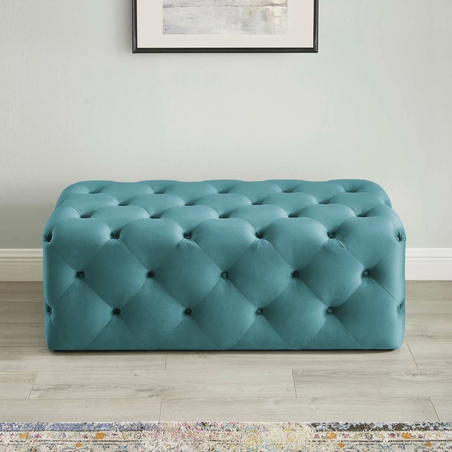 • Enliven your decor with this bench. This tufted button entryway bench comes upholstered in soft and durable stain-resistant performance velvet fabric and dense foam padding for a luxurious seating experience.