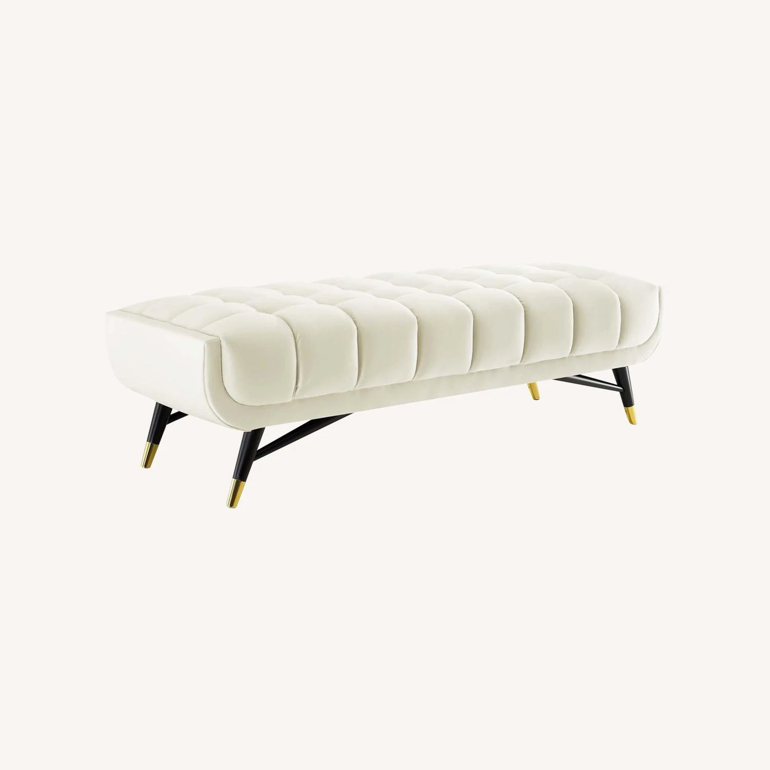 • Resting atop a splayed black birchwood frame with gold metal end caps, this is a striking addition to the home or apartment.