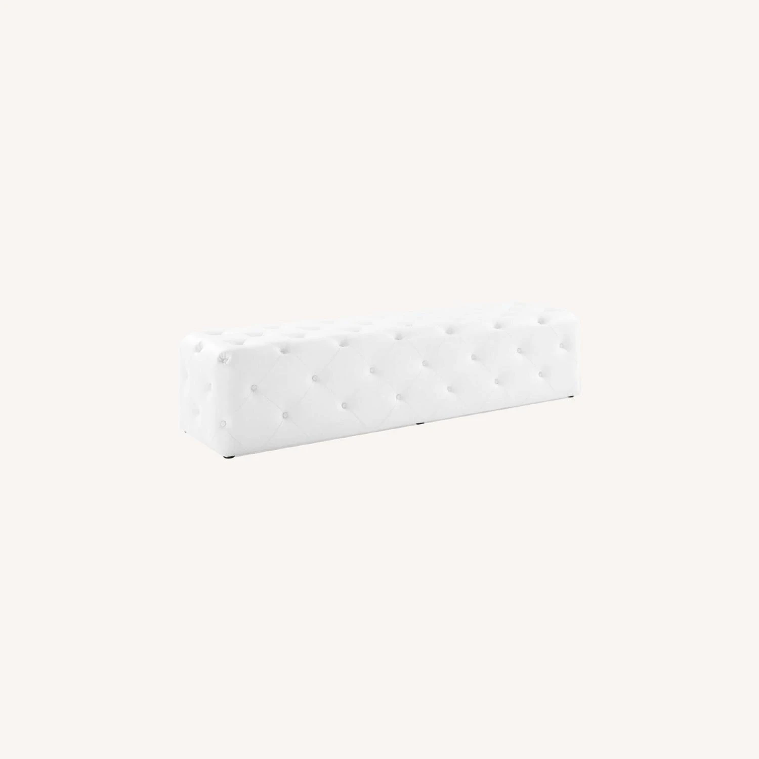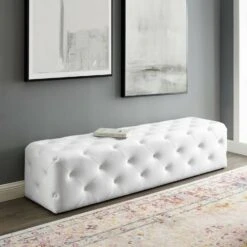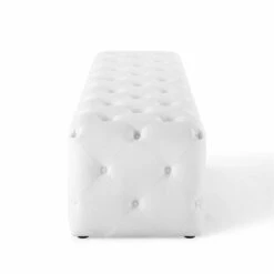 • This tufted button entryway bench comes upholstered in smooth faux leather with dense foam padding for a luxurious seating experience.