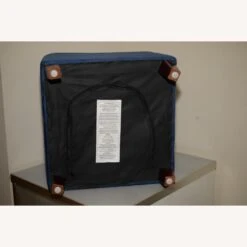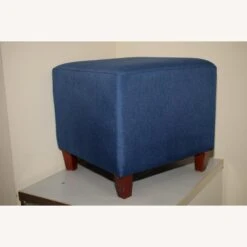 Adeco Simple British Style Cube Footstool, 16x16x16 Blue Ottoman bench foot rest.