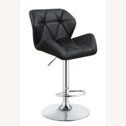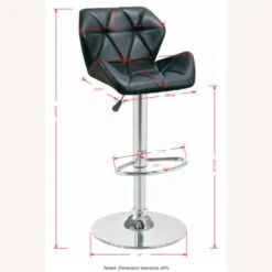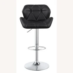• Featuring a black faux leather upholstered seat, this stool is complete with a geometric tufted design. Stylize your bar scene with this hip bar stool.