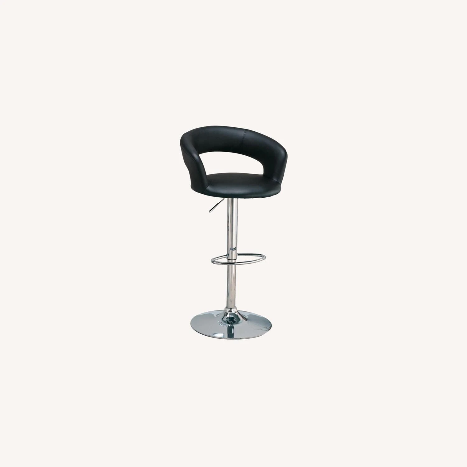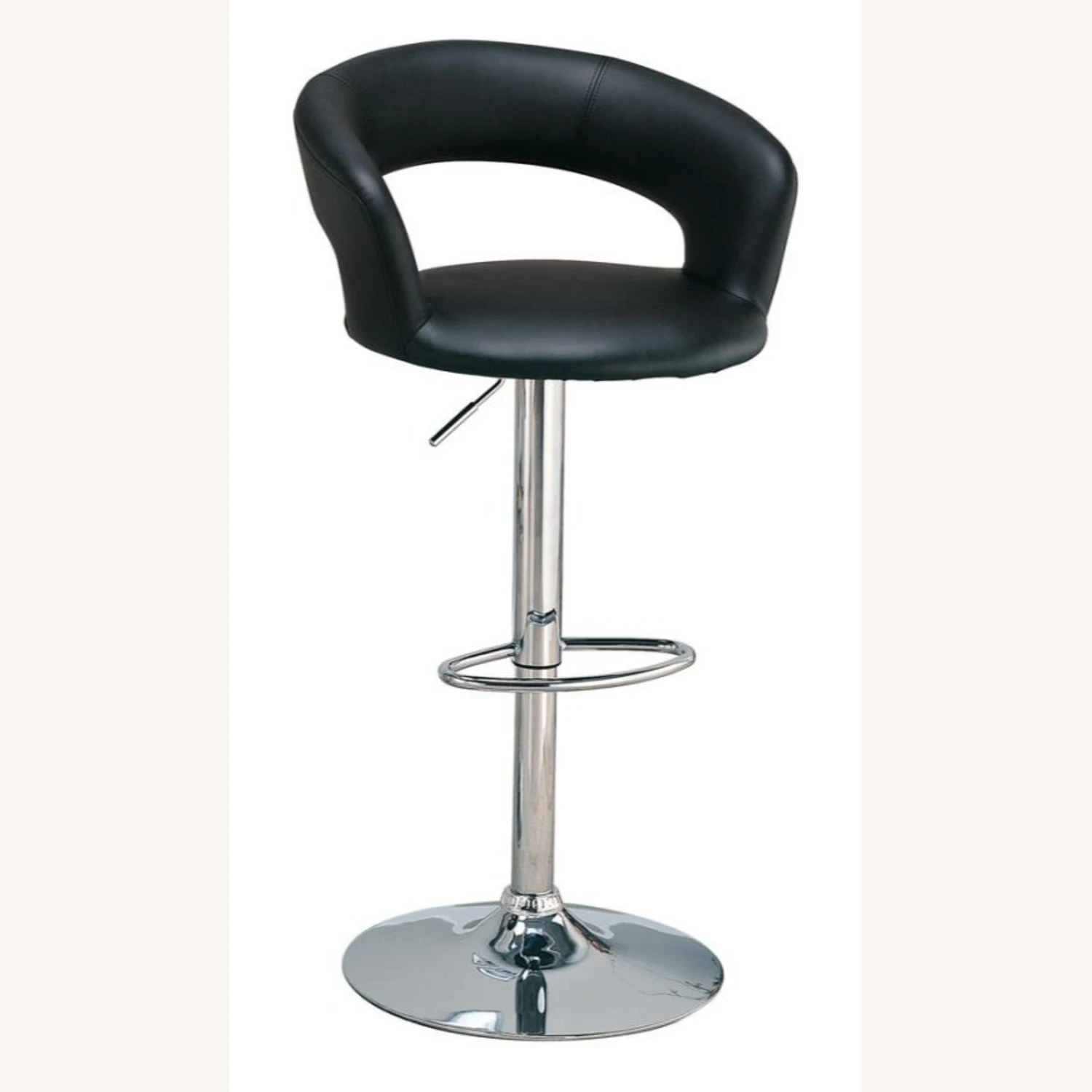 • Manufactured with a durable steel construction, this adjustable bar stool features white faux leather and a high polished chrome finish.