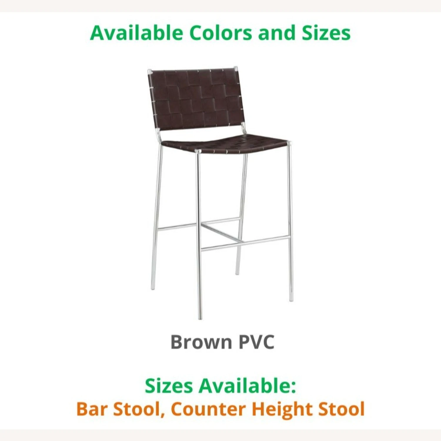 This model comes in this BROWN, and sizes BAR STOOL and COUNTER HEIGHT STOOL. If you are interested in a color/size other than that of this listing, and if the quantity you wish to purchase is greater than what is listed here, please message us for availability.