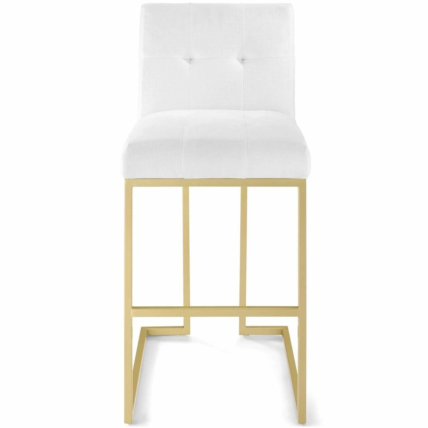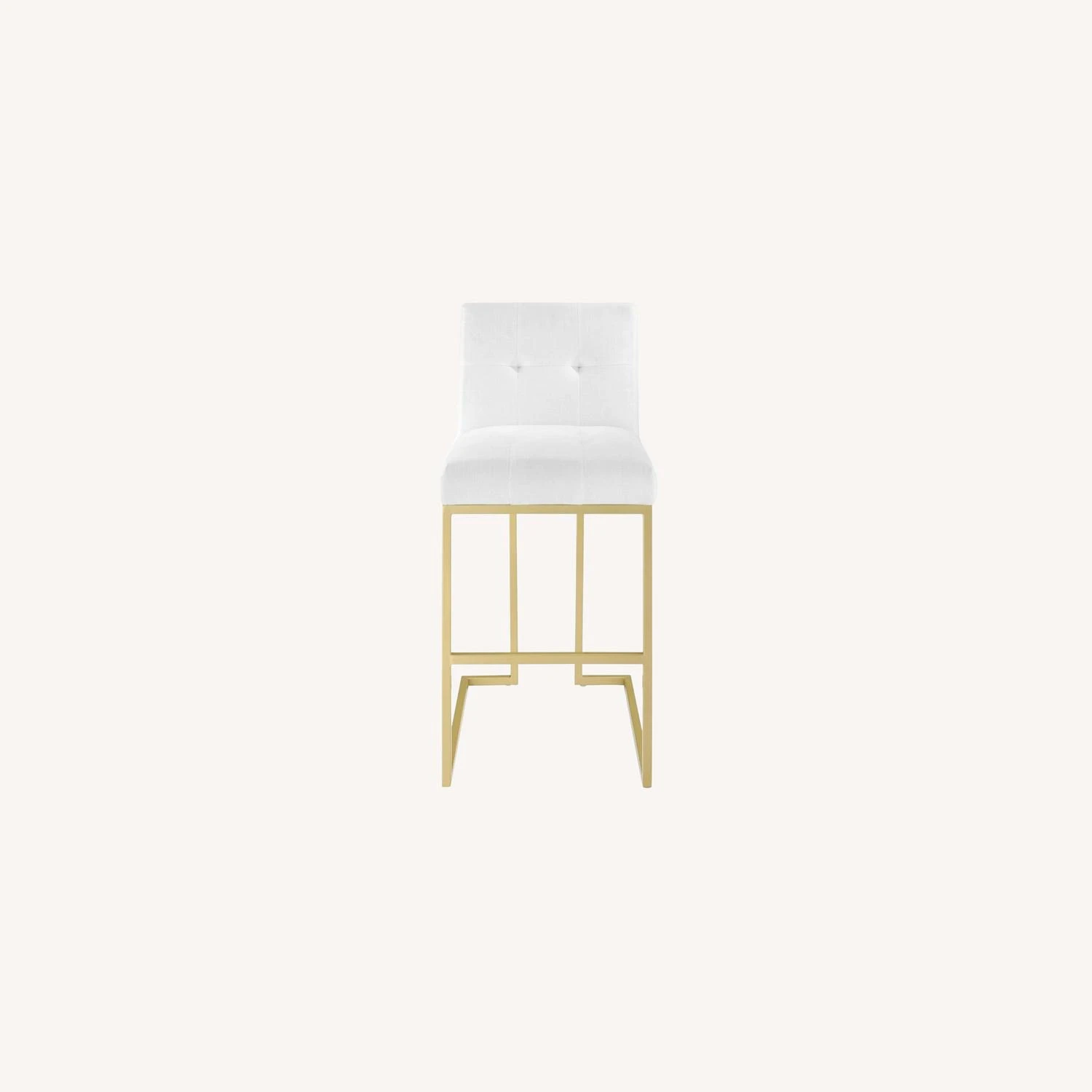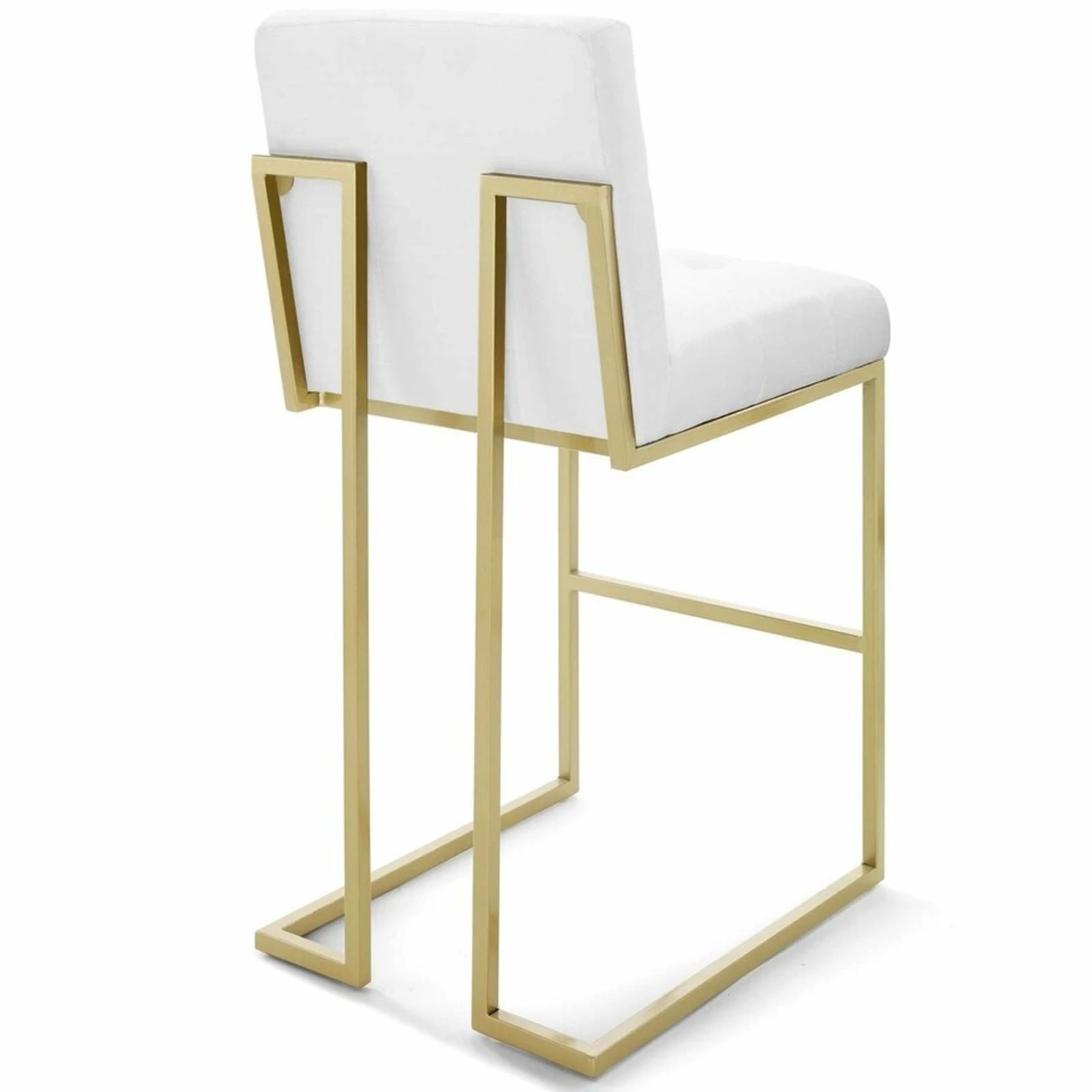 • This stylish bar stool rests atop a sleek gold stainless steel geometric base with a footrest that will elevate your bar and dining experience.