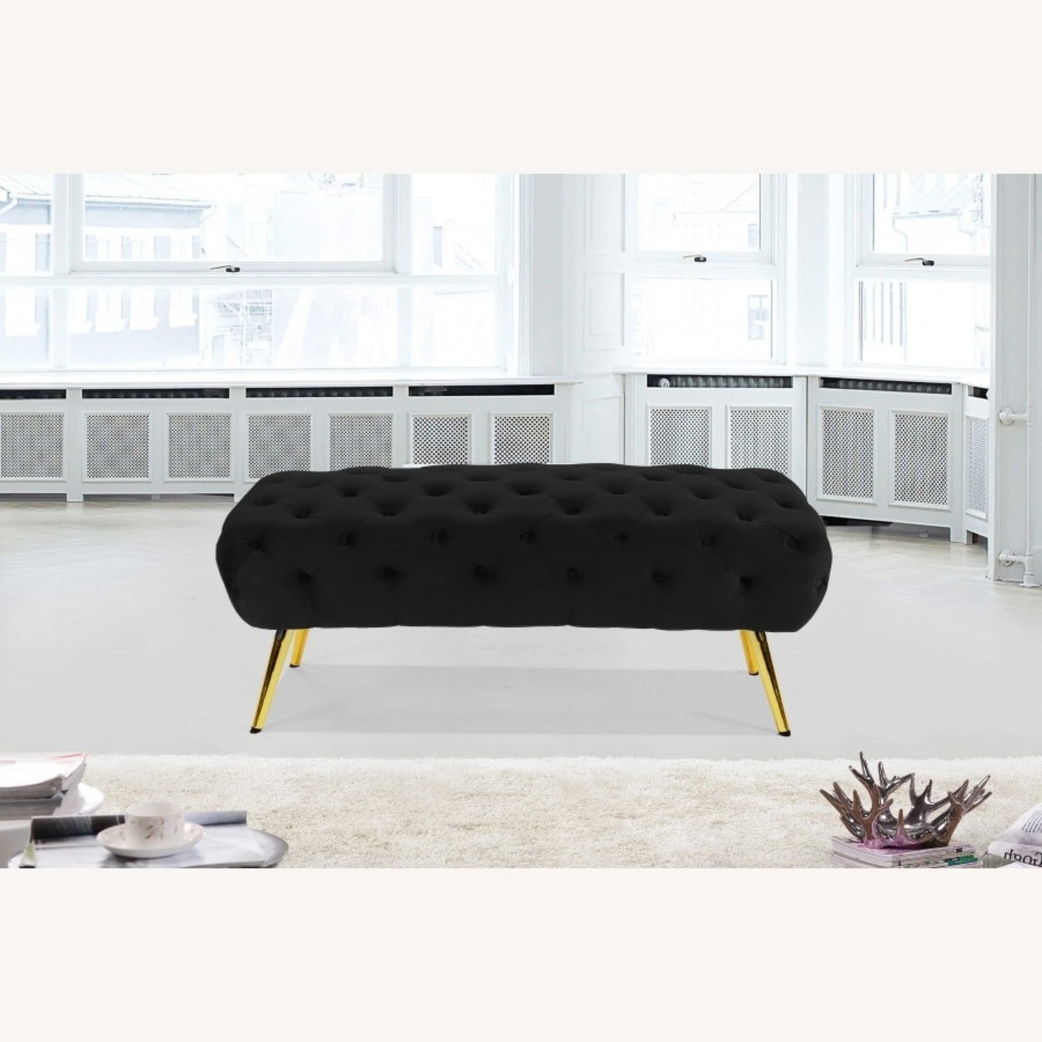 • Inject Hollywood glam into your space with this Black Velvet Bench.