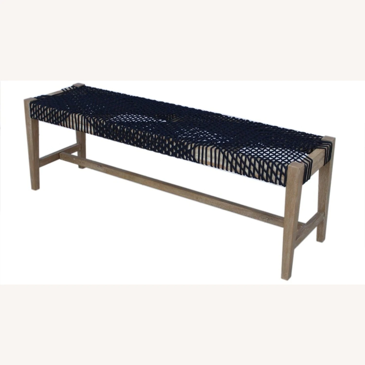 • Woven rope bench completes this refreshing coastal vacation home look that you can have everyday