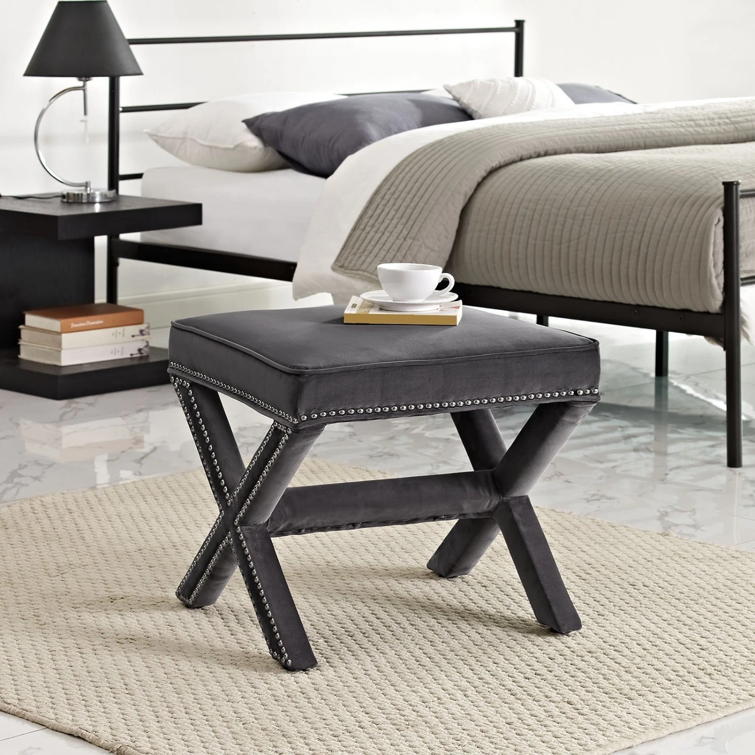 • Featuring elegant nail head trim and surrounded by velvety polyester fabric with dense foam padding, this is a perfectly soft and cozy bench for the chic modern lifestyle.