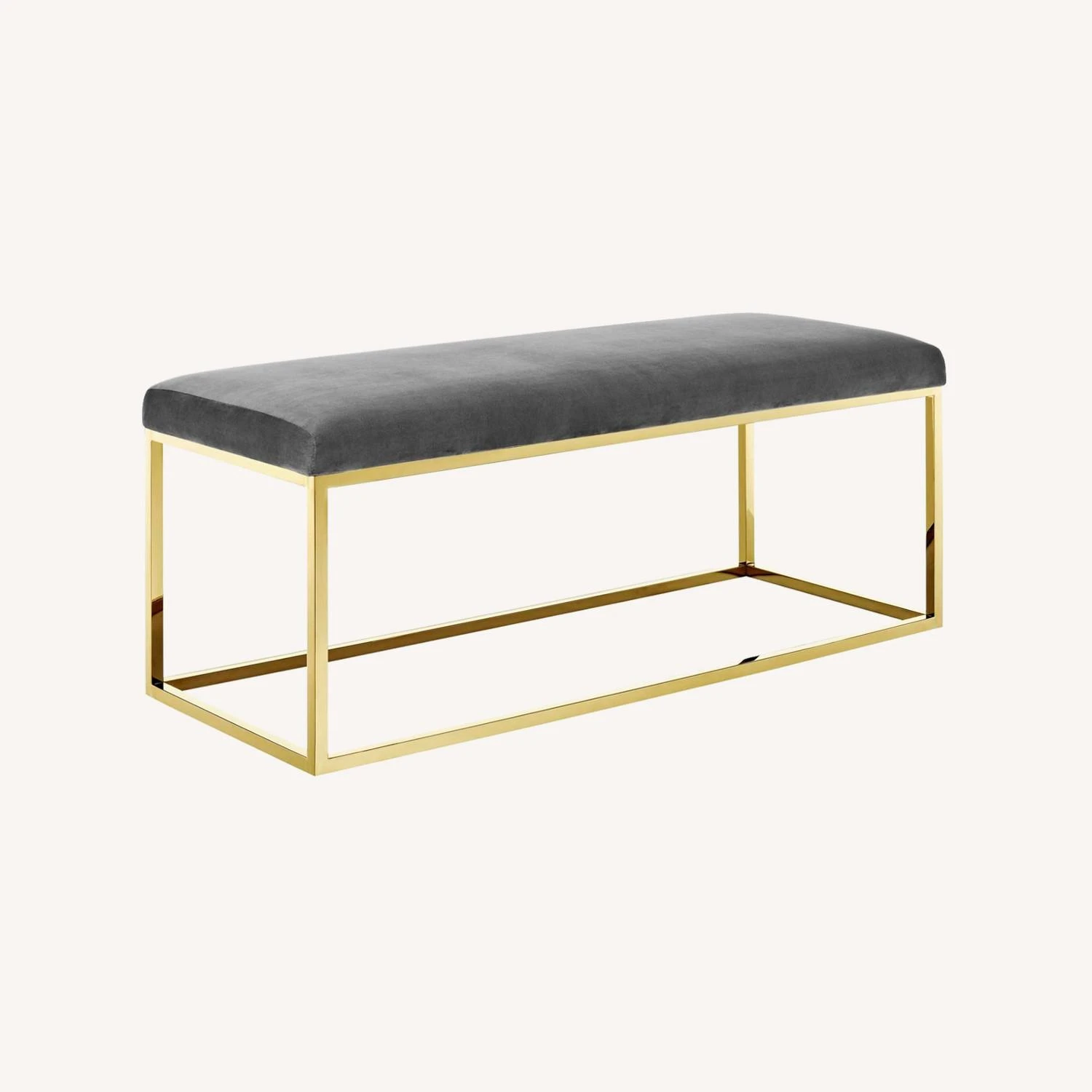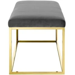 • Make a statement with this bench. Brimming with clean lines and a sleek modern look, this features a polished stainless steel base, elegant velvet polyester fabric top, and non-marking foot caps that help protect your flooring.