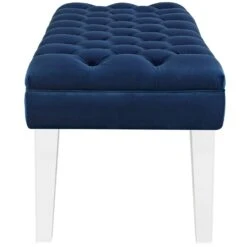 • Easy on visual space and elegantly chic, this comes densely padded in foam with four clear acrylic legs.