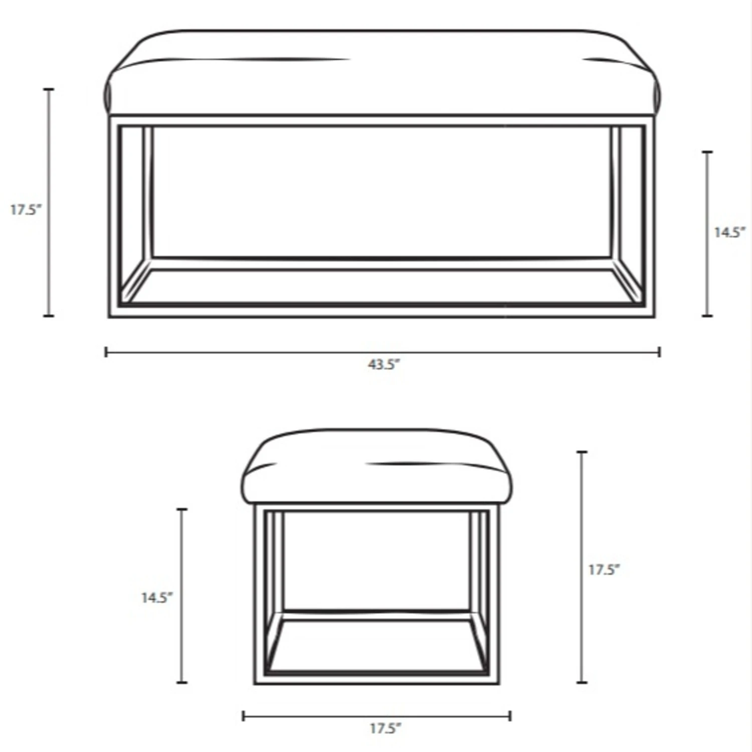 Seat Dimensions 43.5″L X 17.5″W X 17.5″H