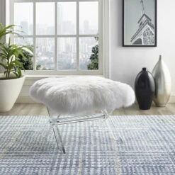 • Featuring elegant pure white sheepskin, this bench comes outfitted with a clear acrylic base and chic luxe design that leaves an impact.