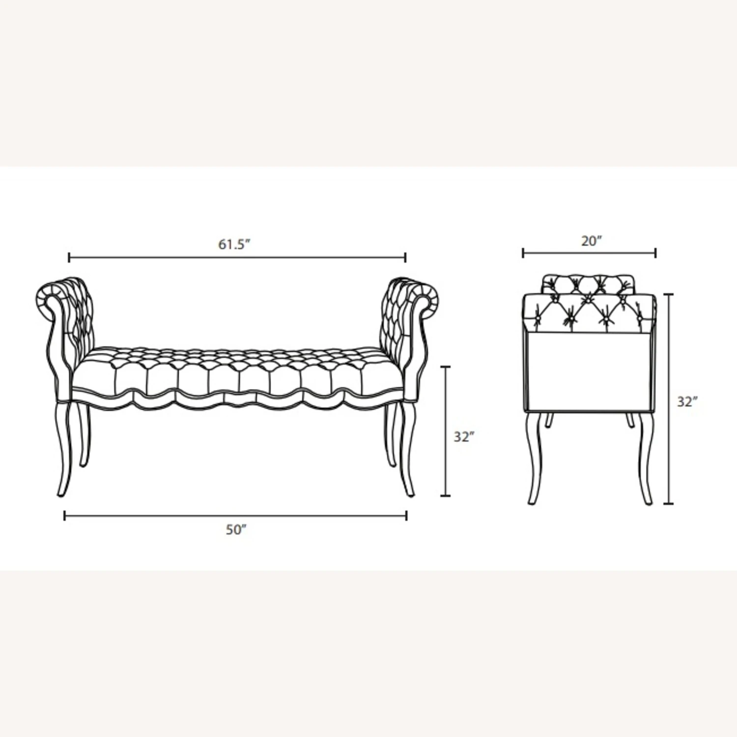 Overall Product Dimensions 20″L X 61.5″W X 32″H