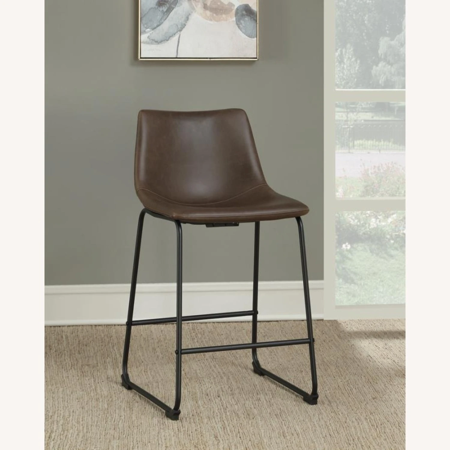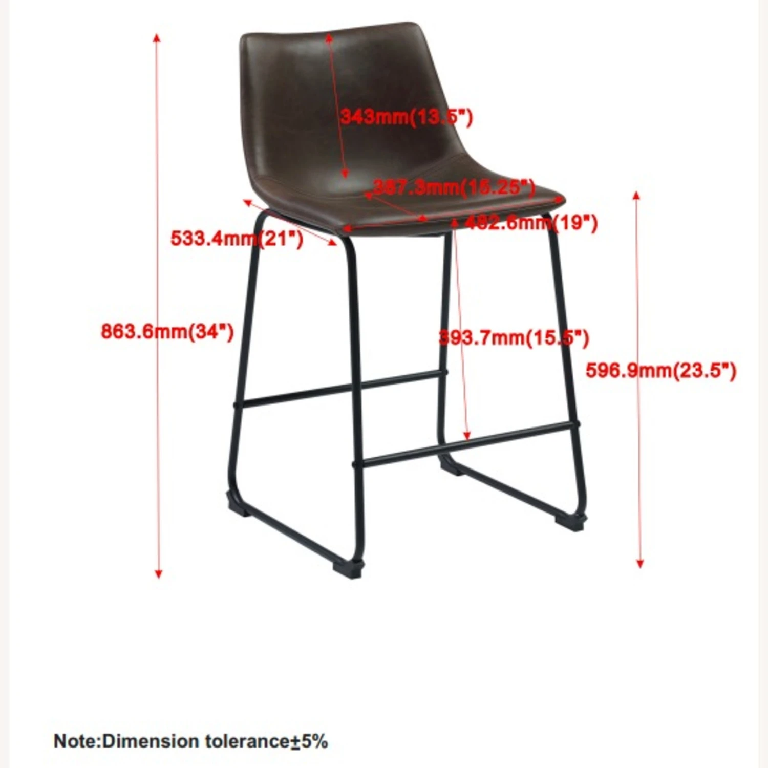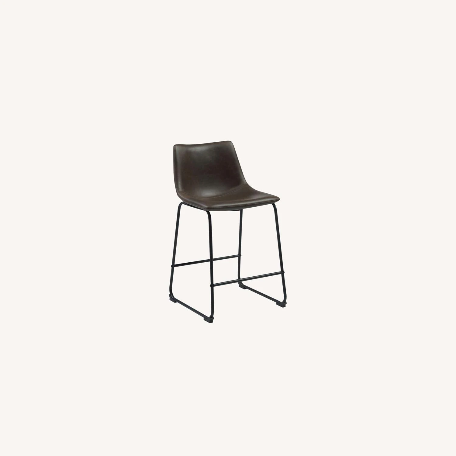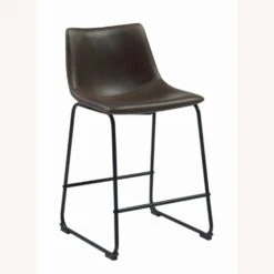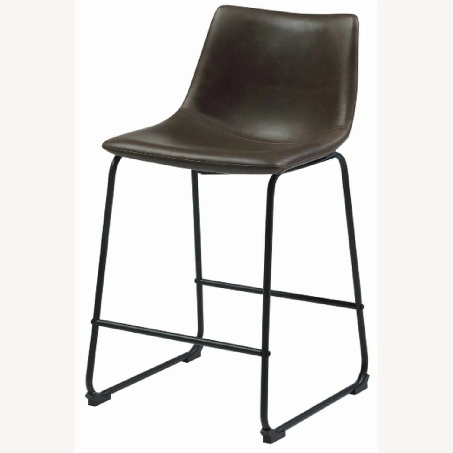 • Its seat is upholstered in beautiful, two-tone brown leatherette.