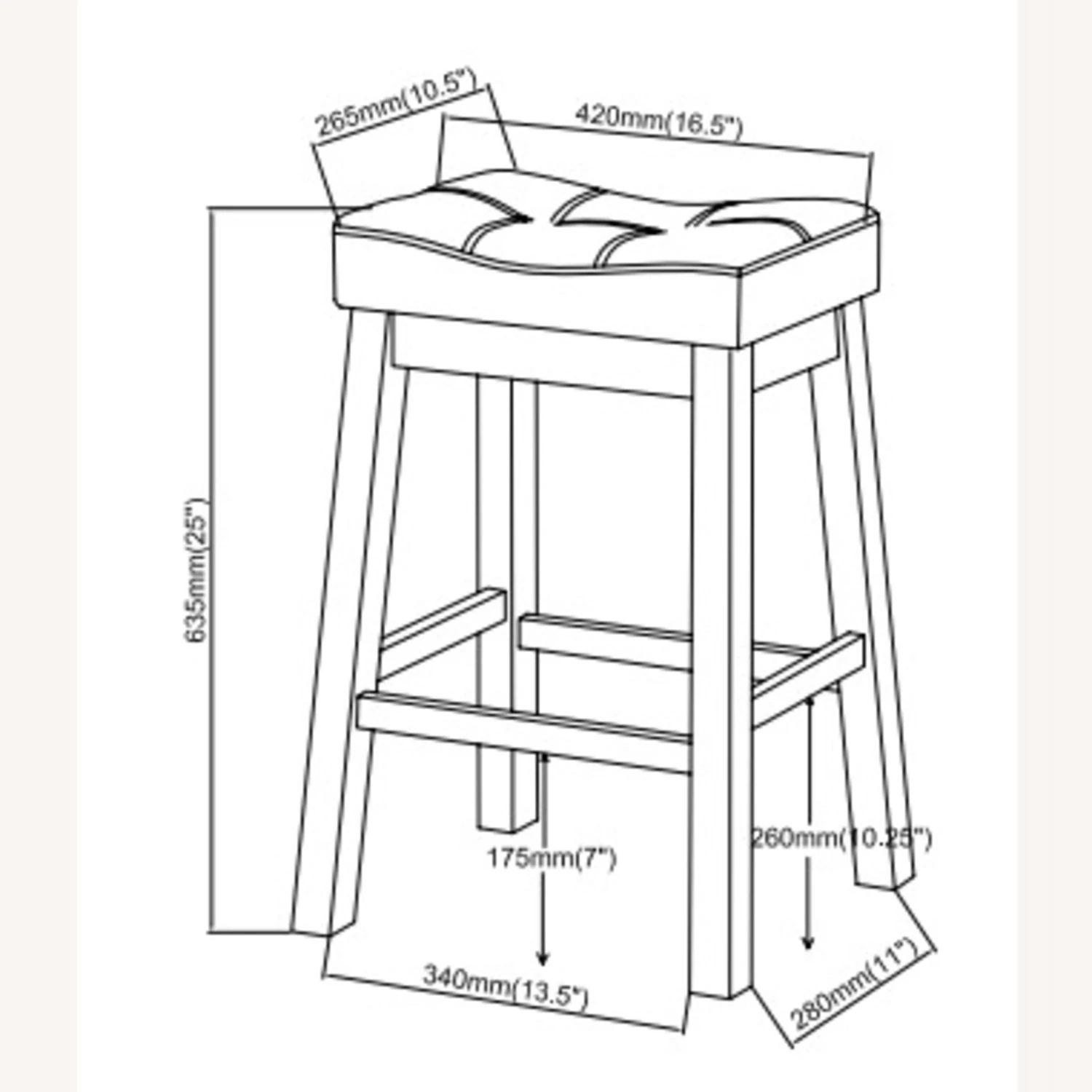 • This bar stool’s seat is also tufted and curved to optimally accommodate users and contribute an added touch of style.