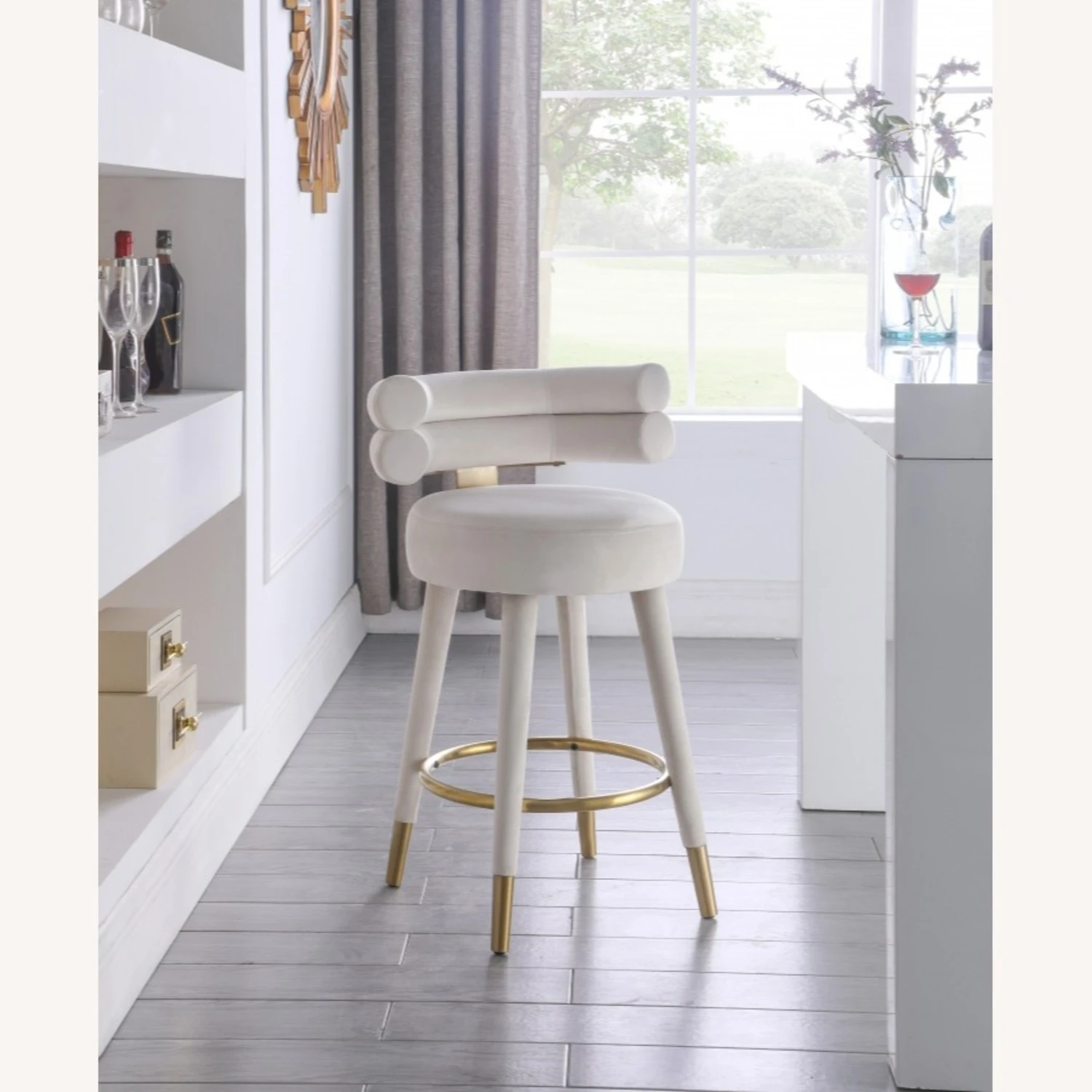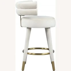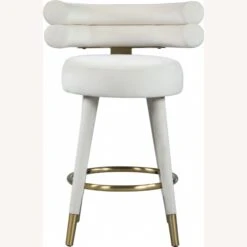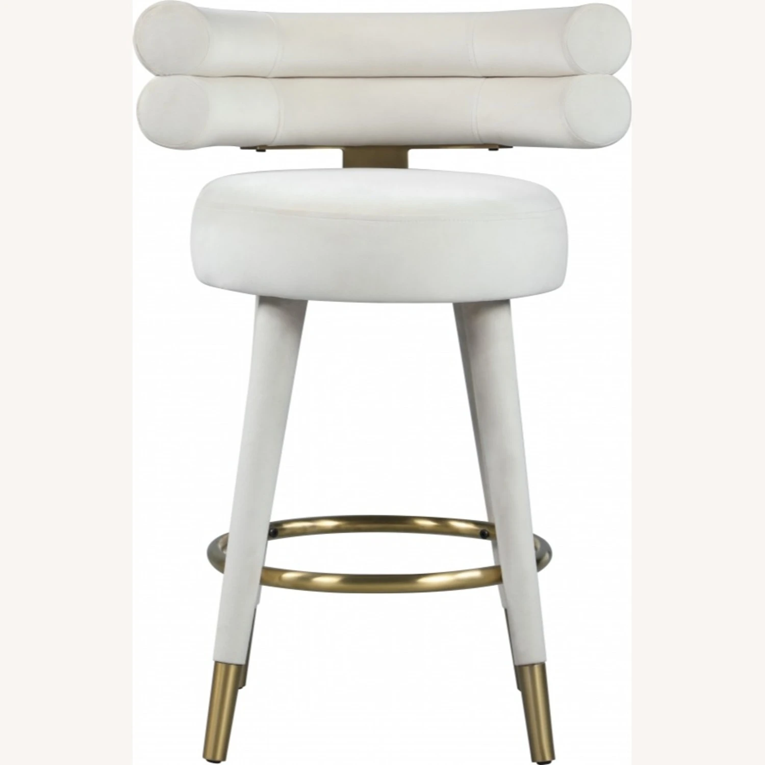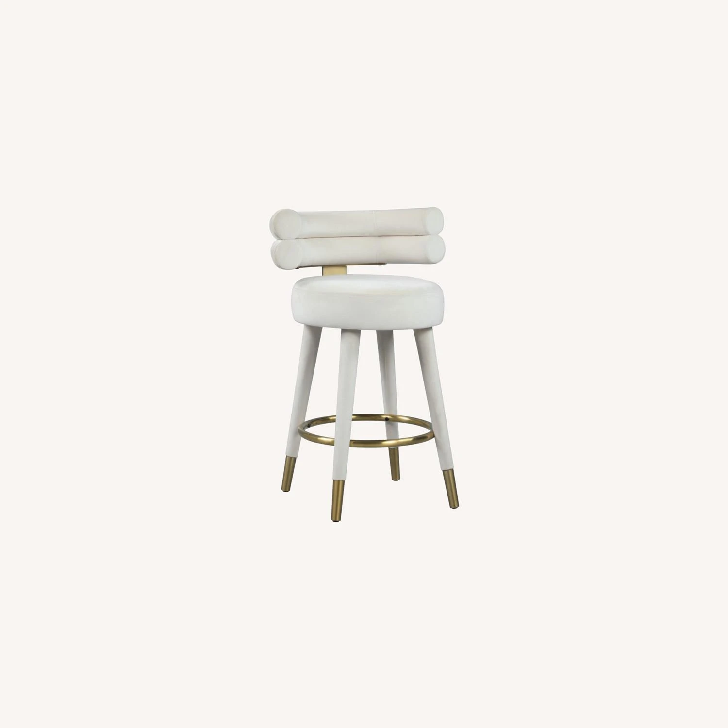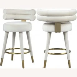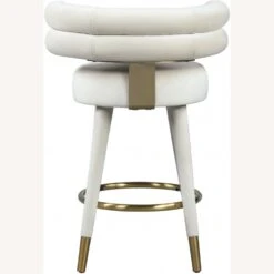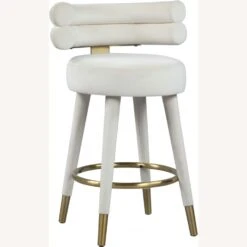 • Covered in chic and soft cream velvet upholstery, this glamourous counter-height stool offers a padded seat and back to cradle your body in comfort while you enjoy a cocktail or a plate of smiley faced pancakes.