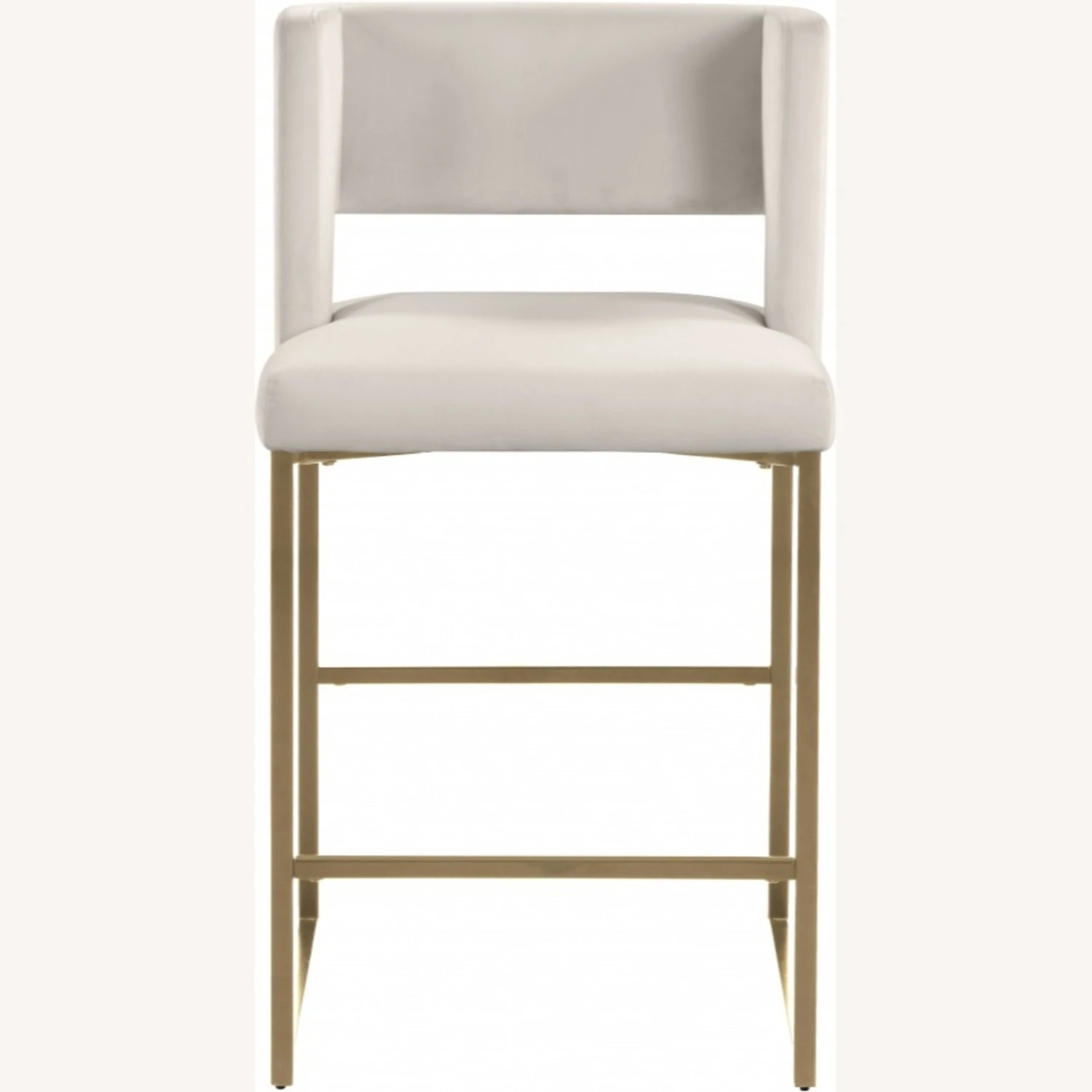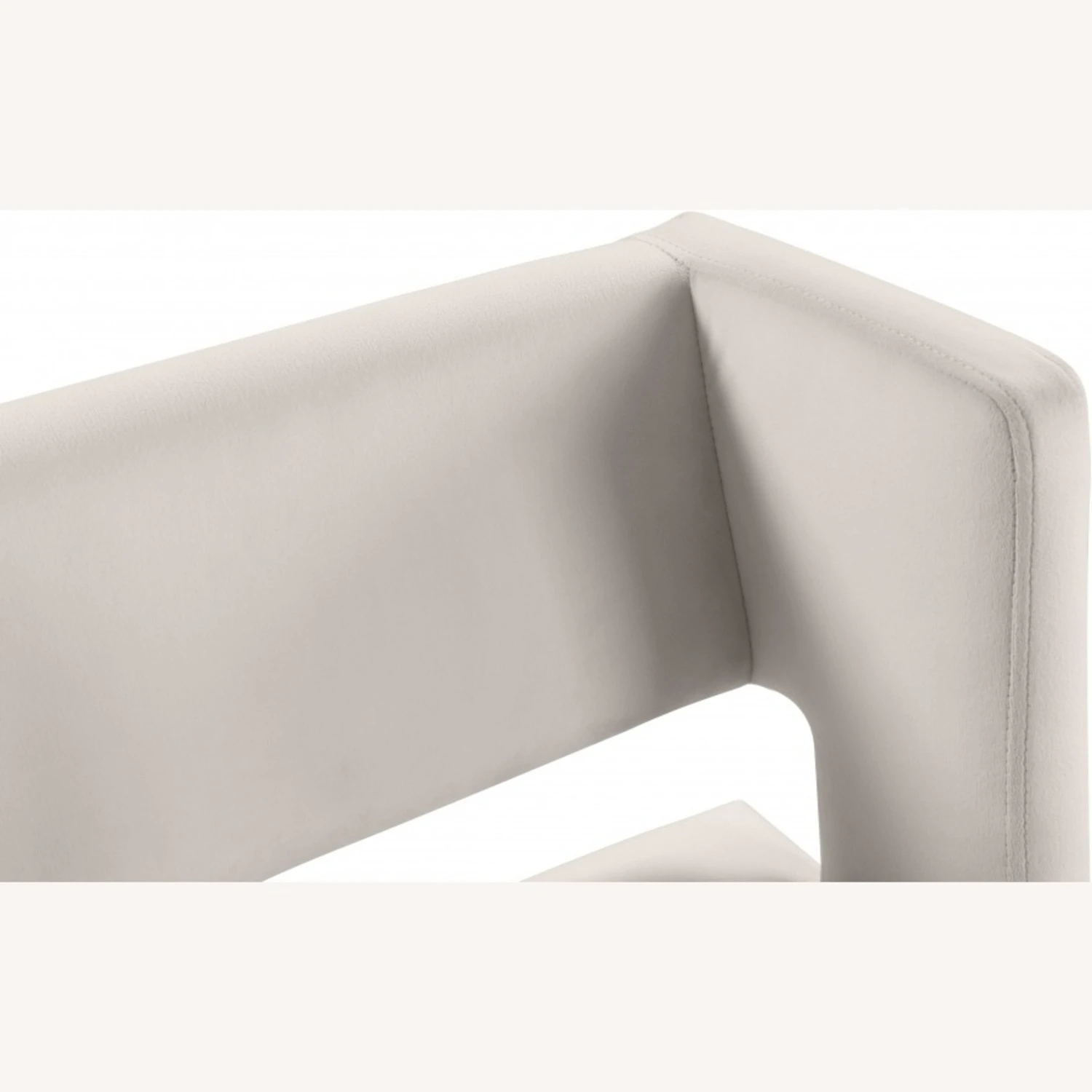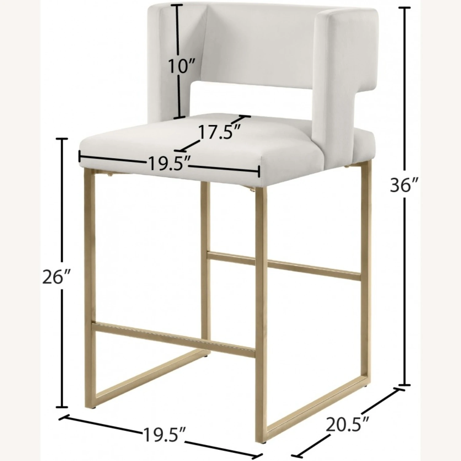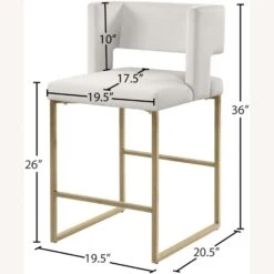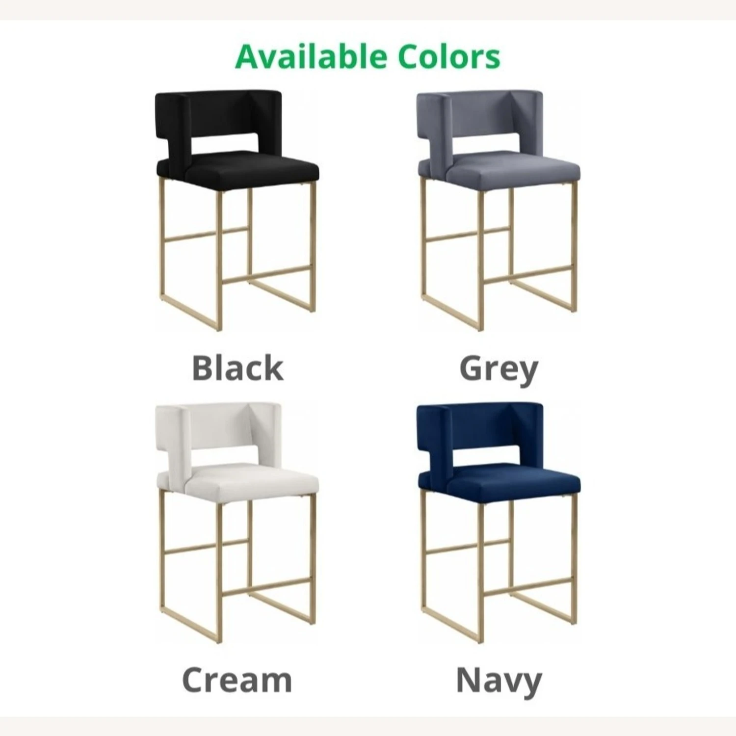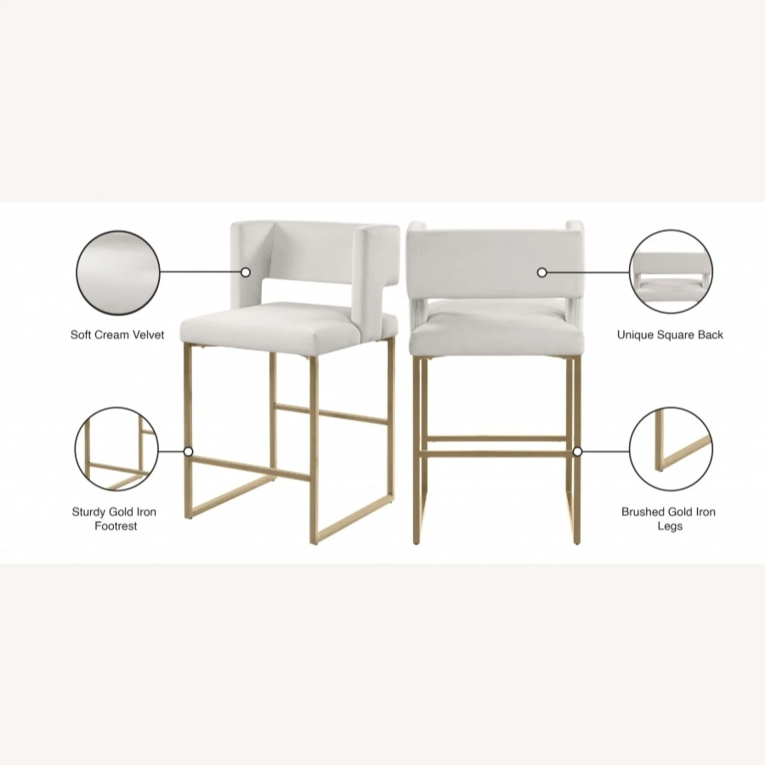 • Four brushed gold square iron legs provide support and stability, while the chair’s soft velvet and cushioning offer an air of luxury.