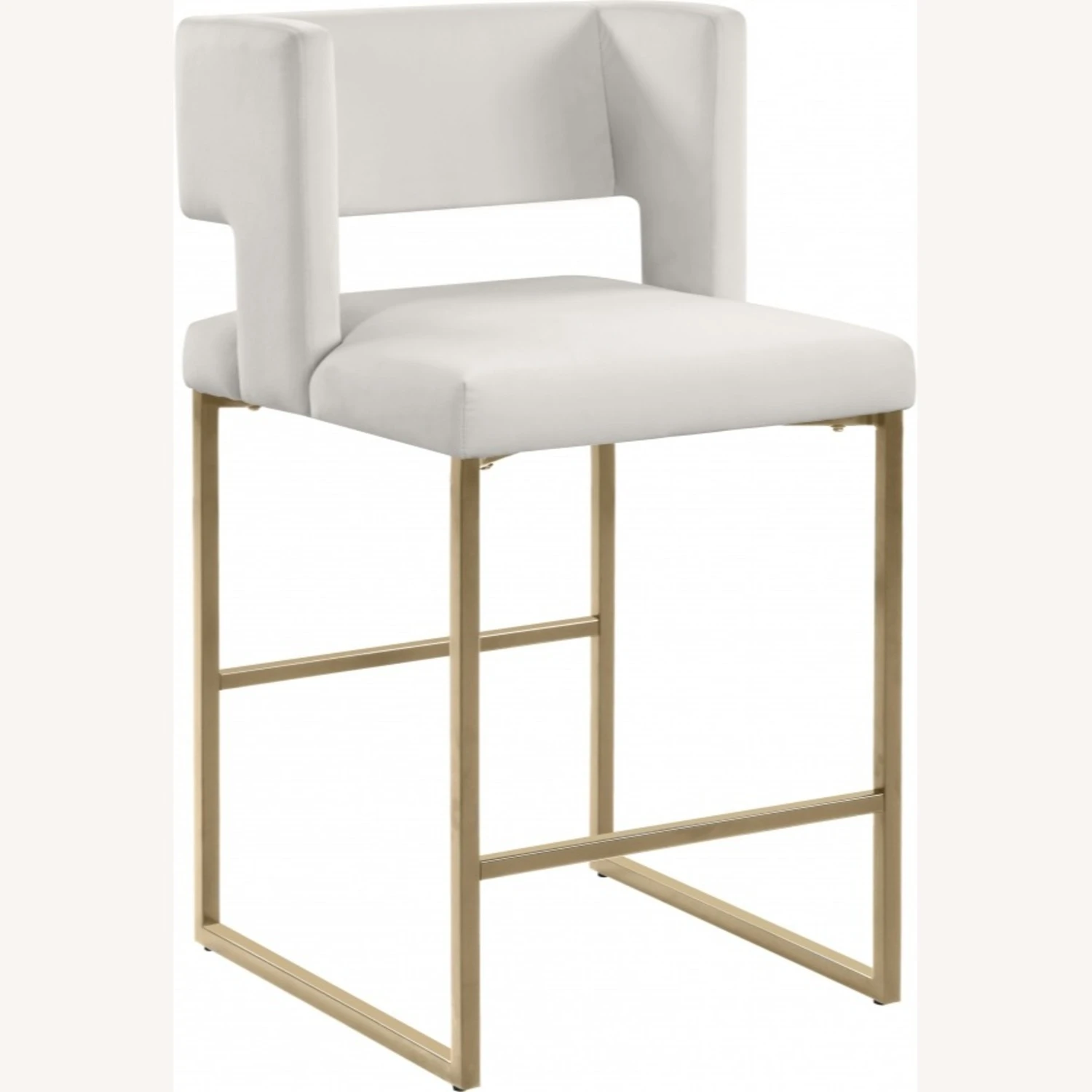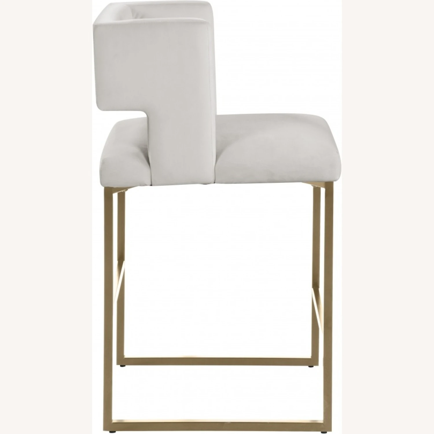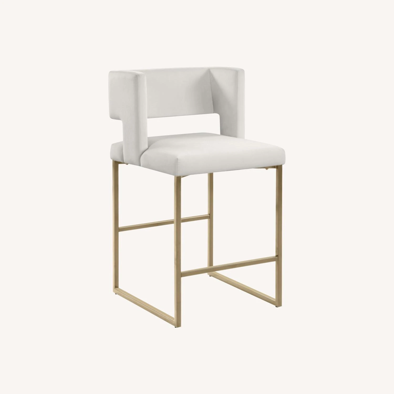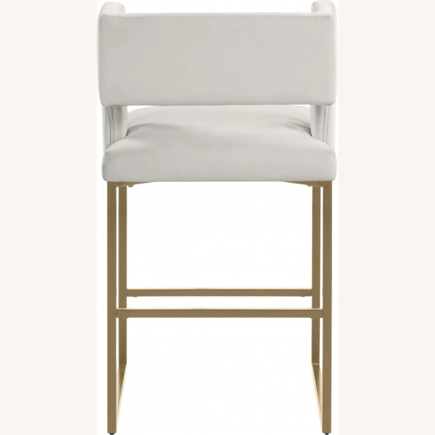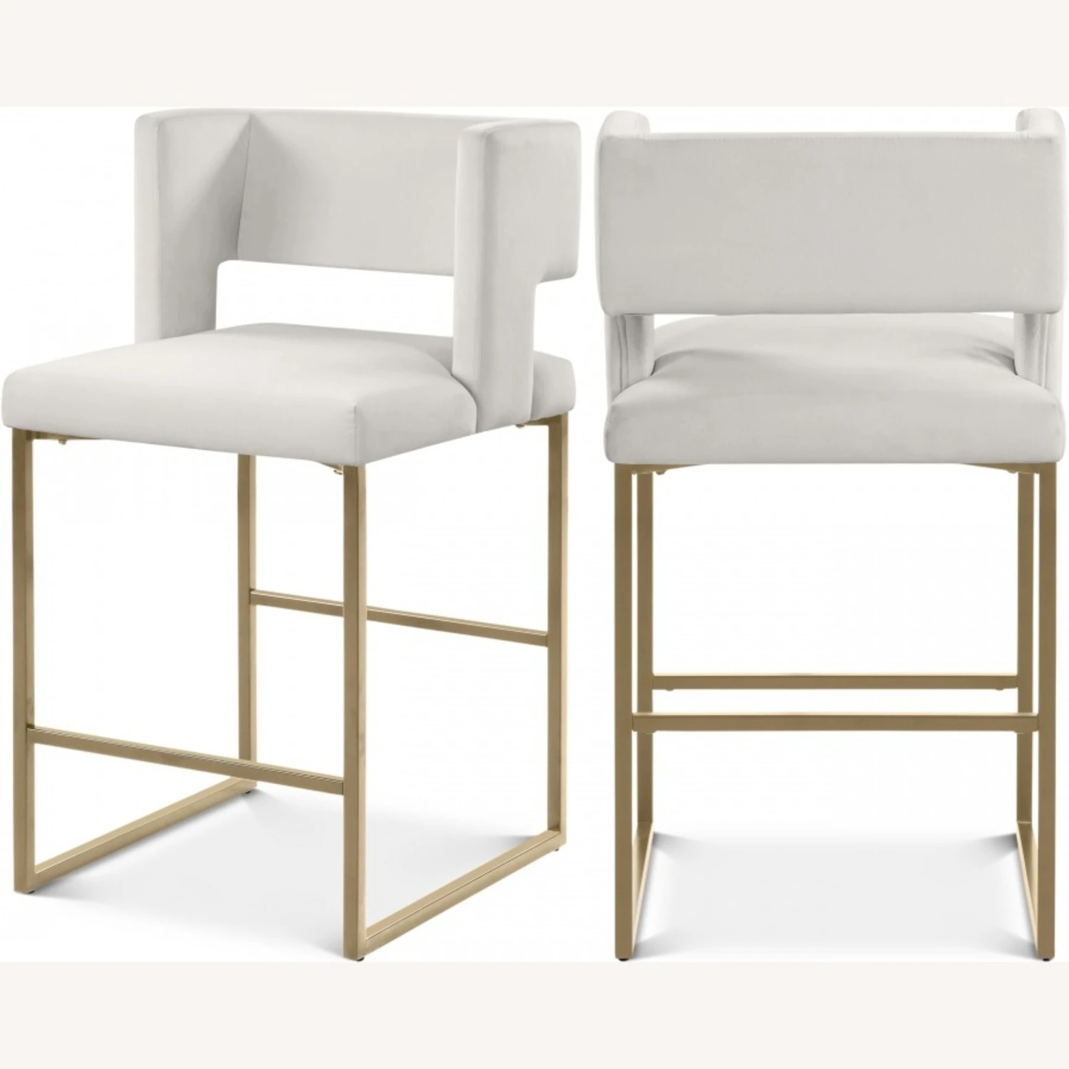 • Four brushed gold square iron legs provide support and stability, while the chair’s soft velvet and cushioning offer an air of luxury.