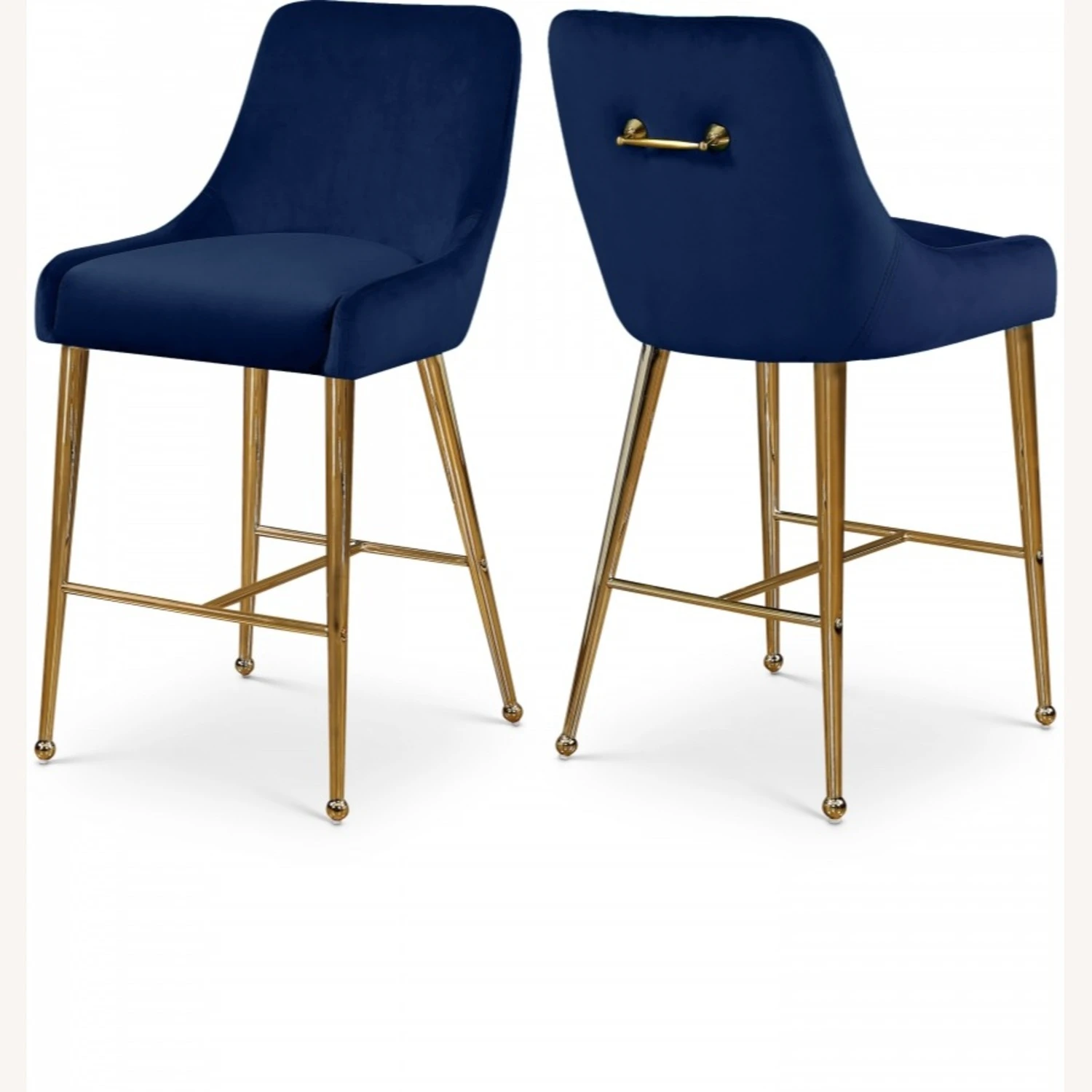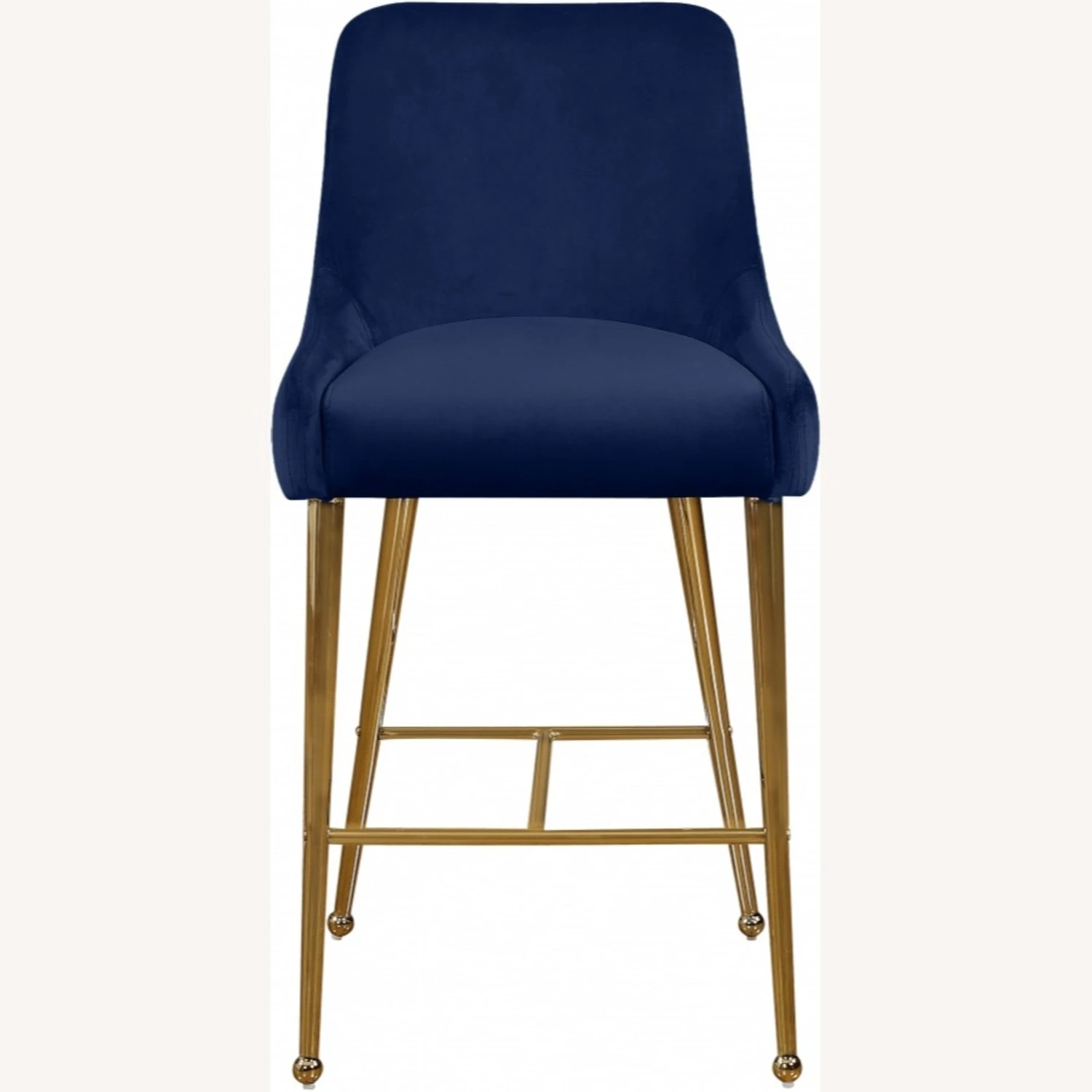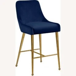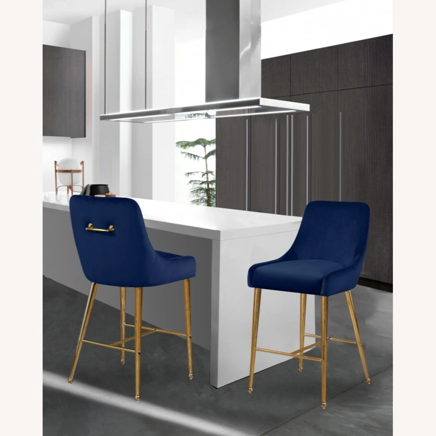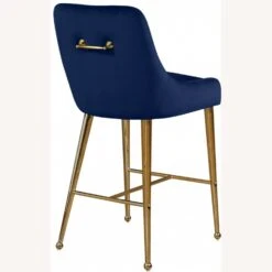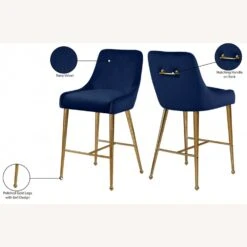 • The home bar or kitchen counter gets a contemporary makeover with the addition of this Navy Velvet Stool.