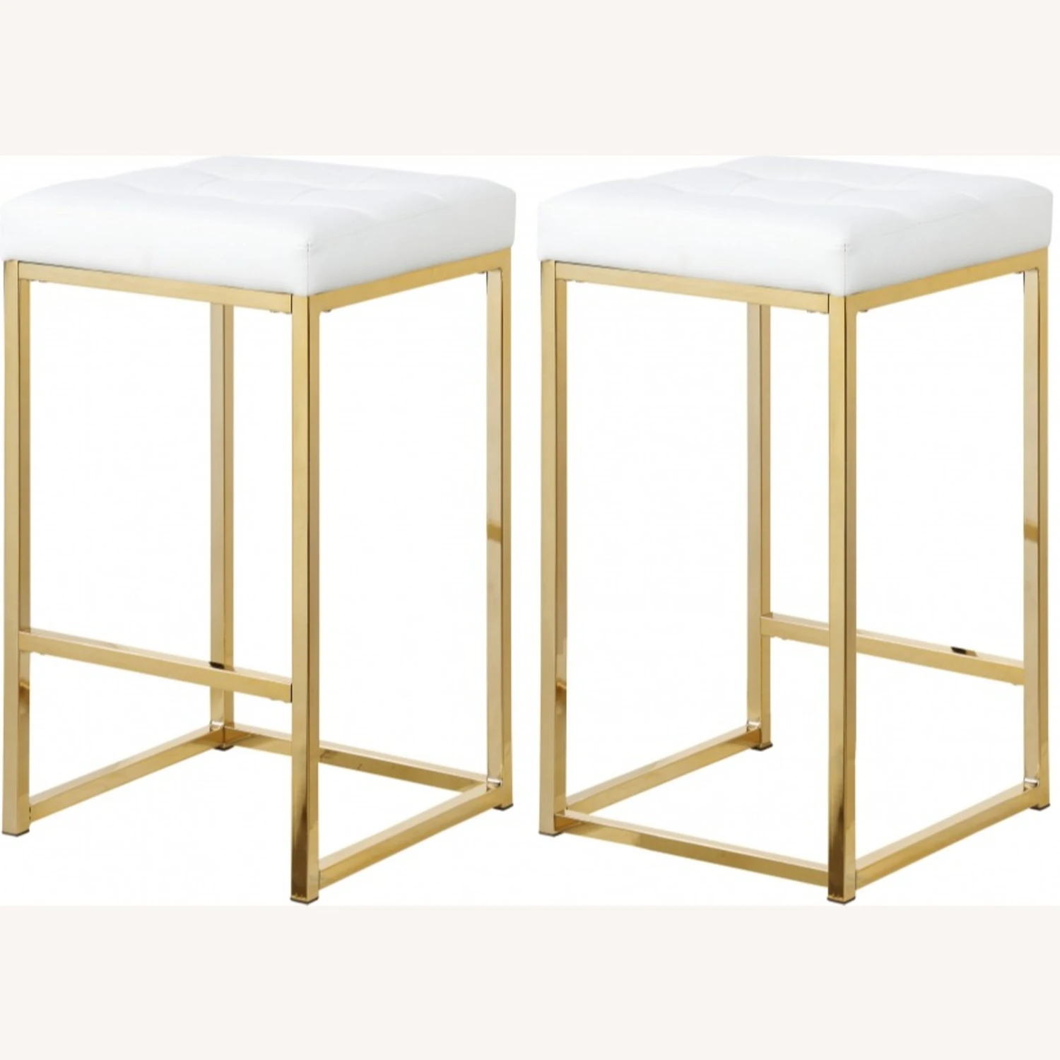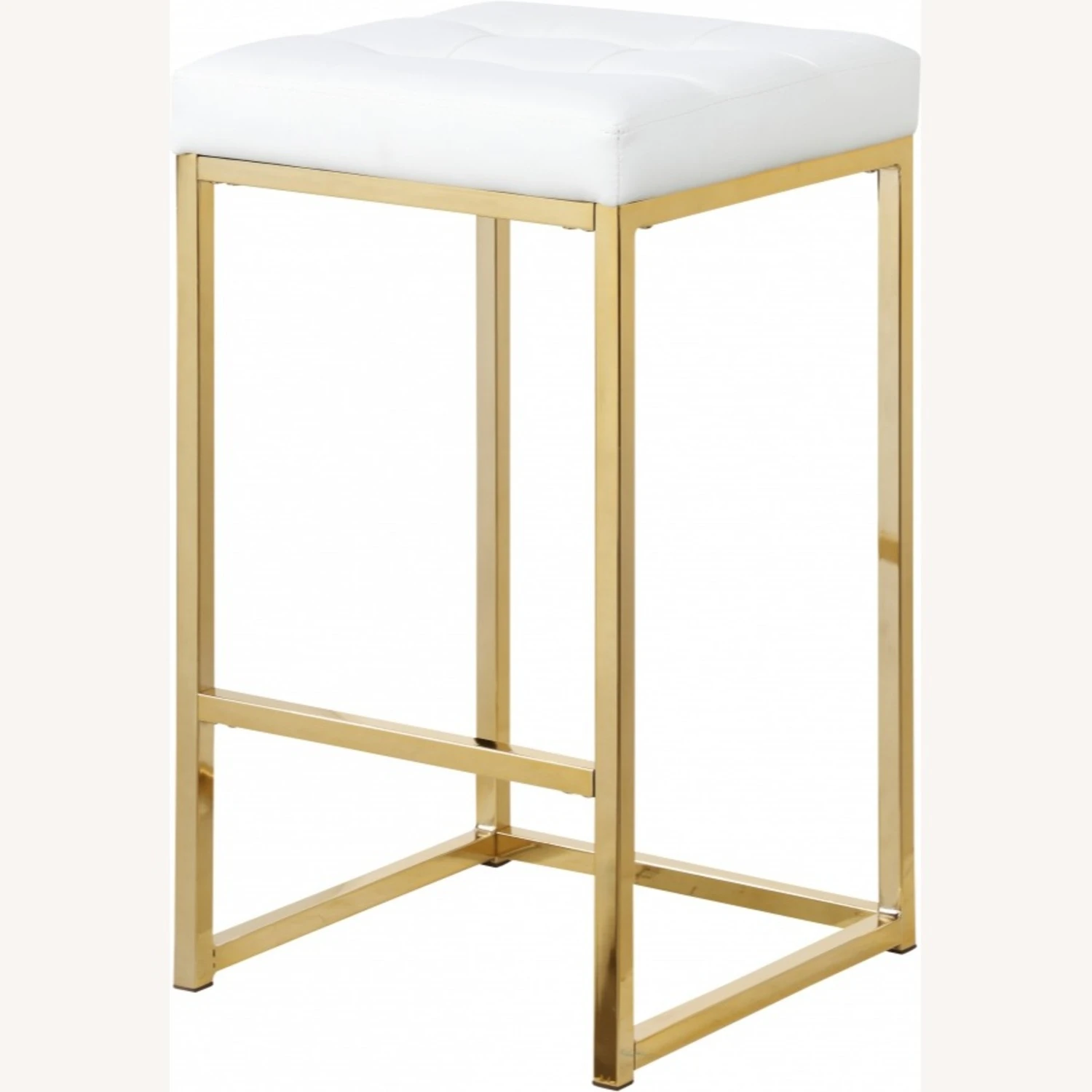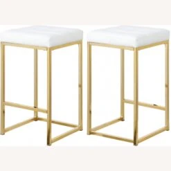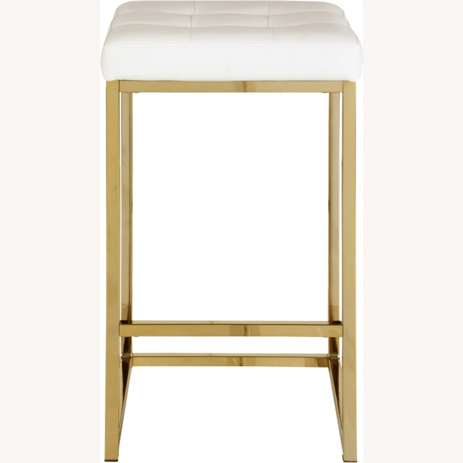 • The base is made from steel for resilient strength and topped with a plump and inviting seat that’s upholstered faux white leather for a rich, sumptuous look.