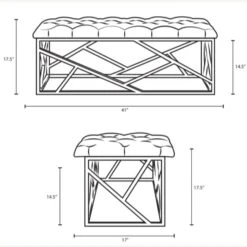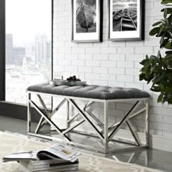 • Beautify your décor with this Bench. Boasting a captivating design, Intersperse features a polished stainless steel base, a luxuriously tufted velvet polyester fabric top with elegantly tufted buttons, and non-marking footpads that help protect your flooring.