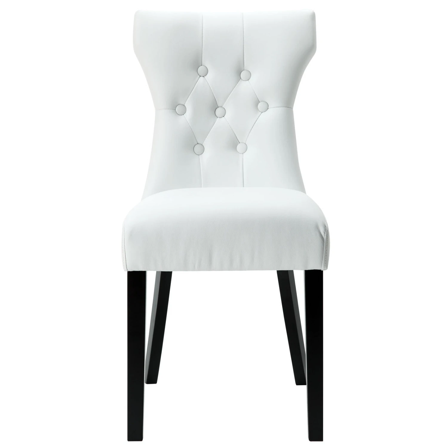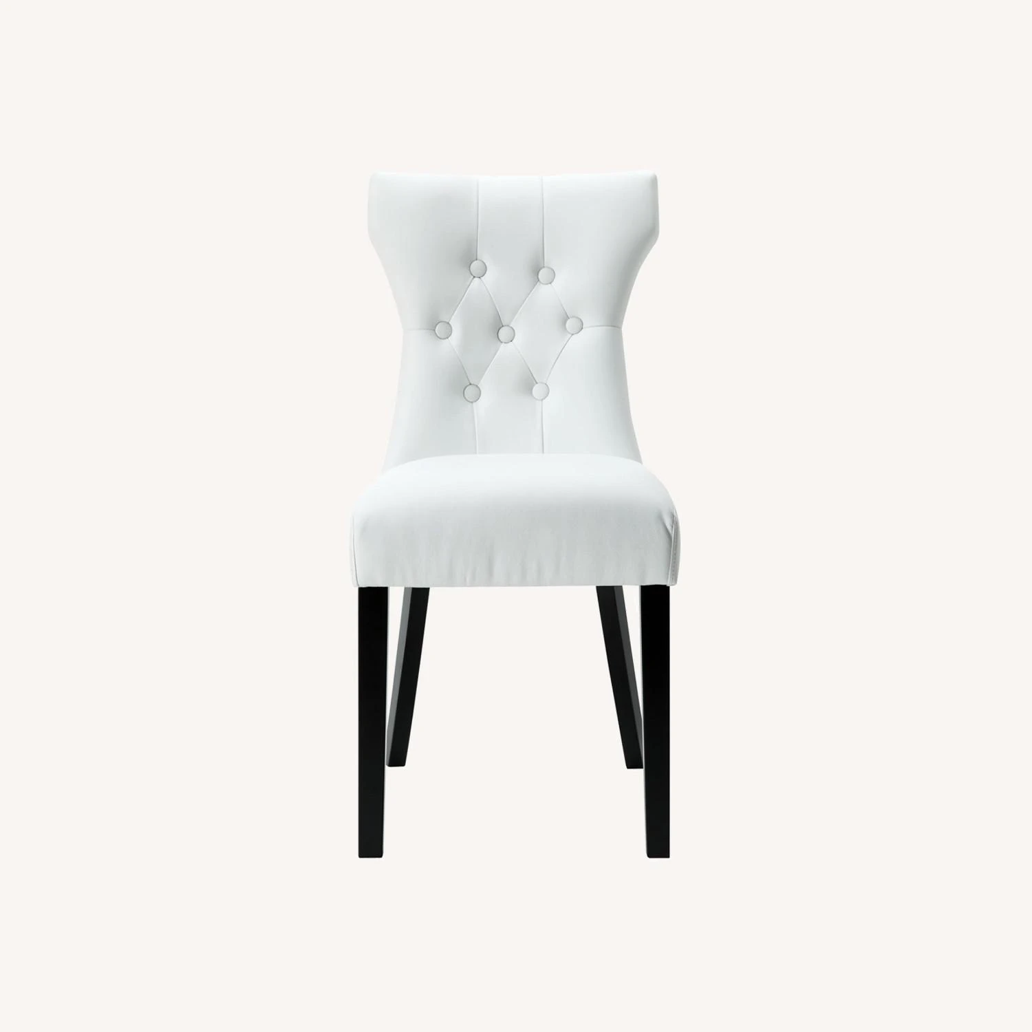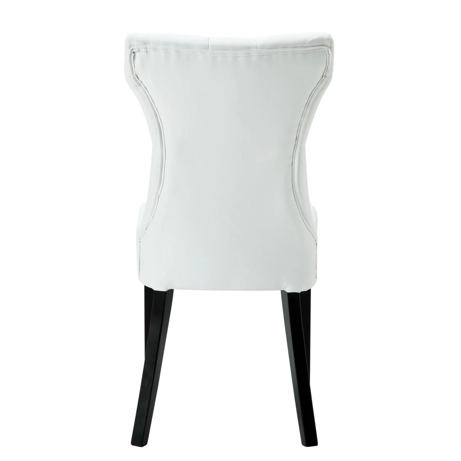 • A softly tapered back and rounded hardwood legs lend distinguished support to this hourglass-shaped chair.