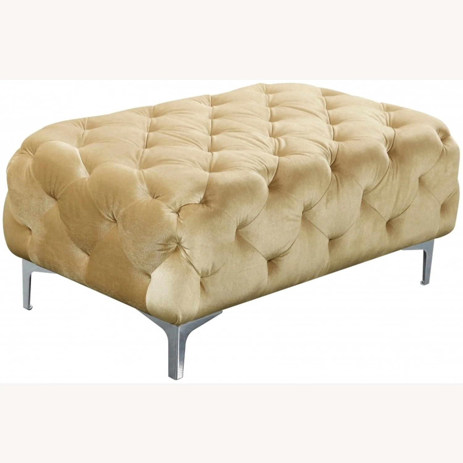 • Rich Velvet covers the plush, comfortable seat, padded with high-density foam and modern tufted design.