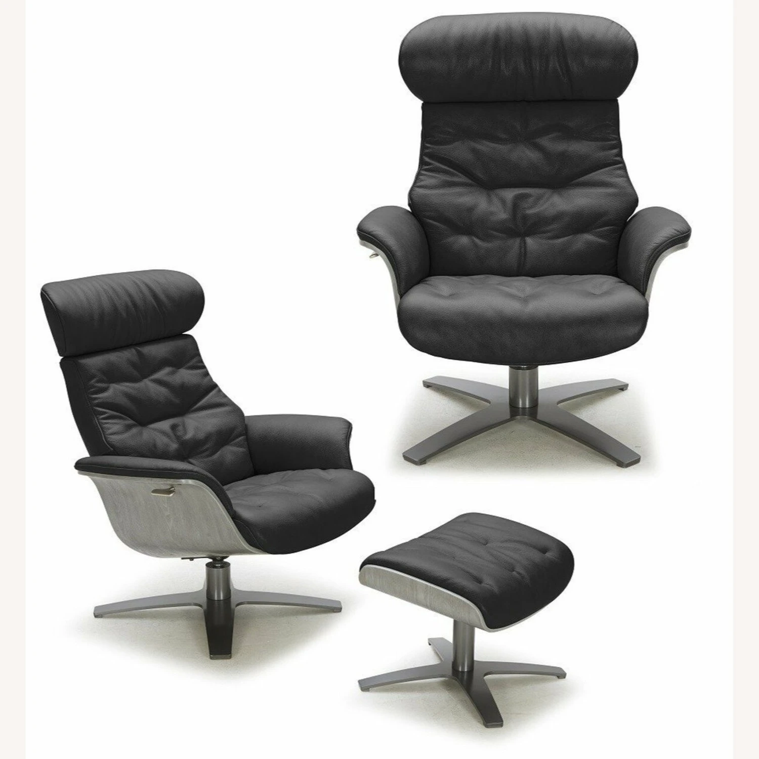 • The play of wood veneer entwined with premium Italian leather upholstery create a striking contrast.