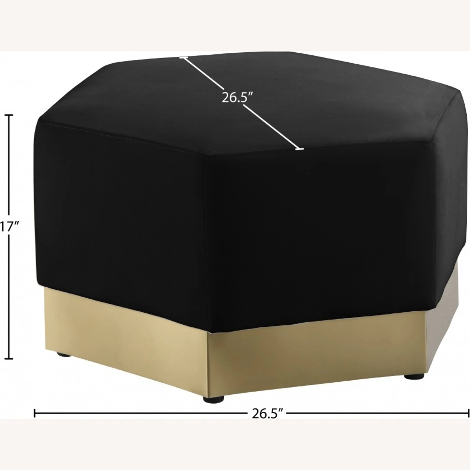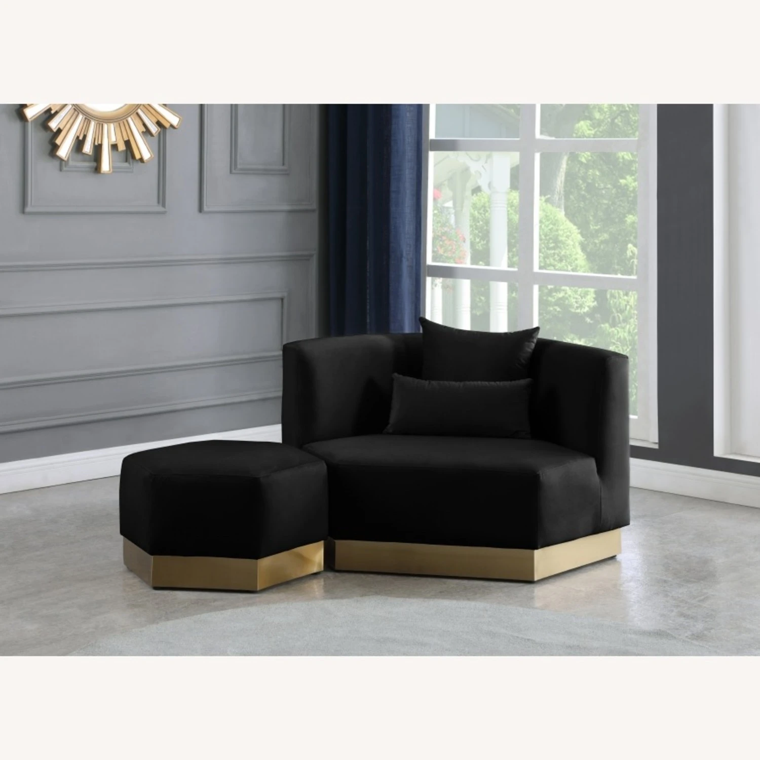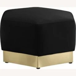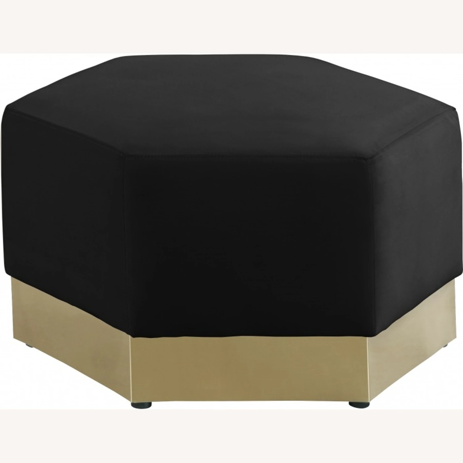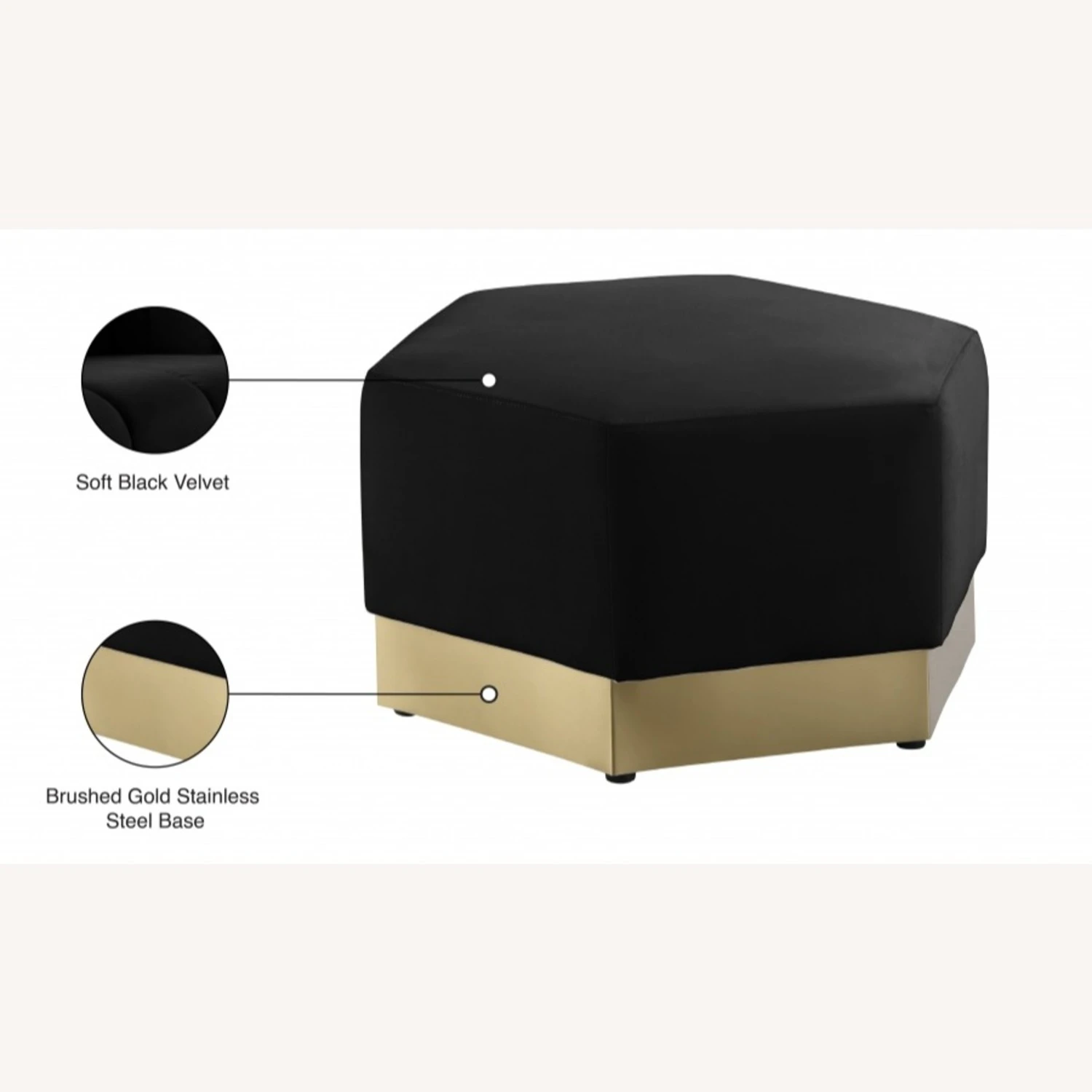 • Upholstered in soft black velvet, this piece fits in nicely with nearly any other colors in the room, and the brushed gold stainless steel base ensures its up-to-the-minute look.