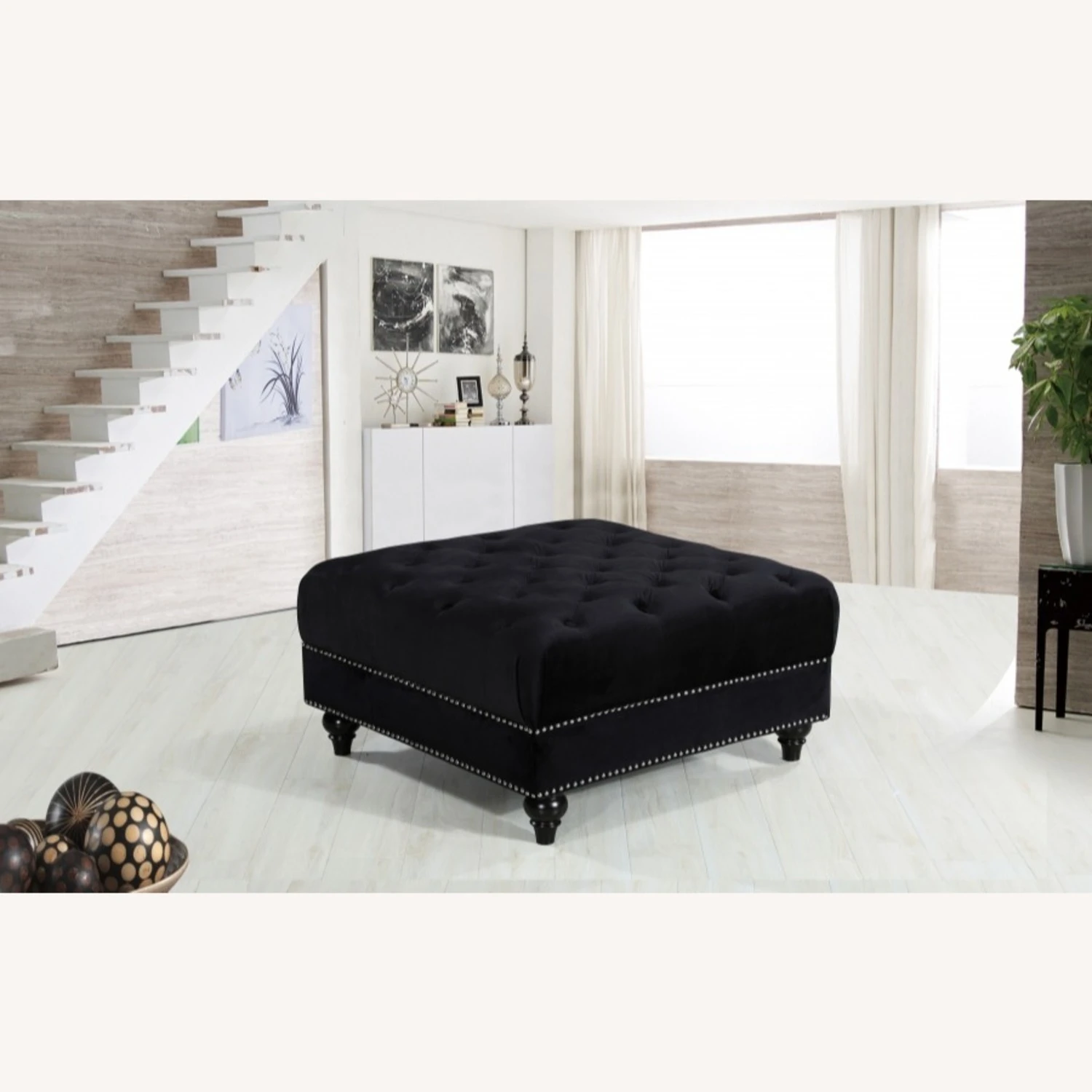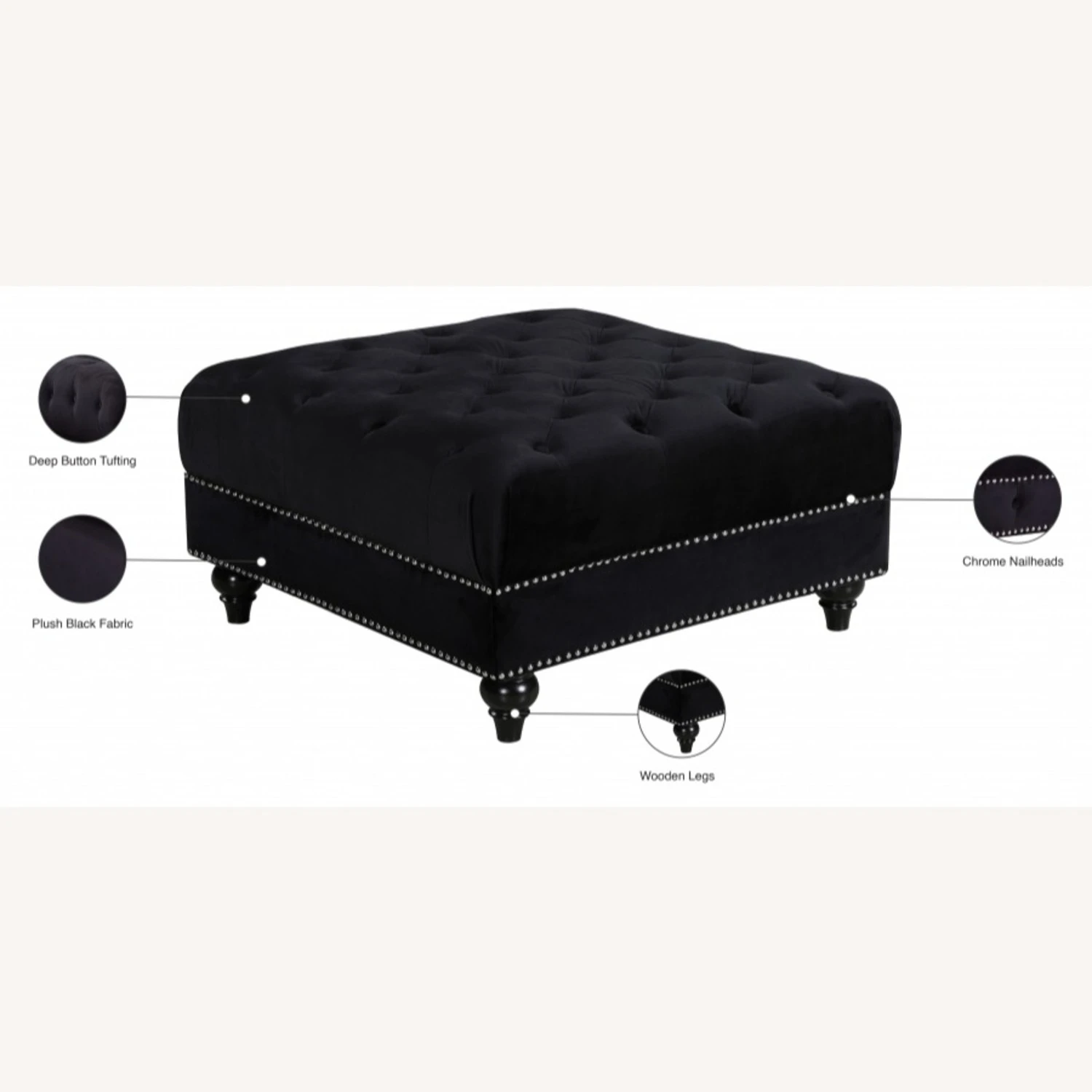 • This sumptuously elegant ottoman serves not only as a luxurious foot rest, but doubles as a seat when you have extra company over.