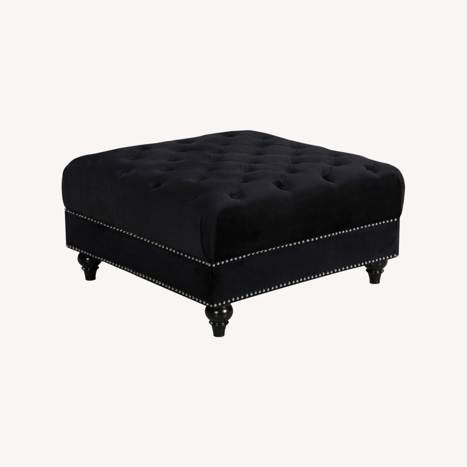 • Take a load off when you prop your feet up on this cream velvet ottoman.