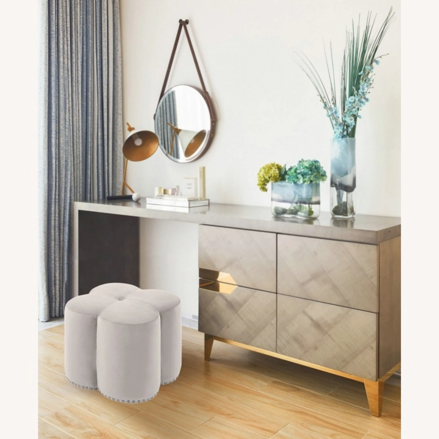 • Bring a whimsical touch to your space with this fun velvet ottoman.