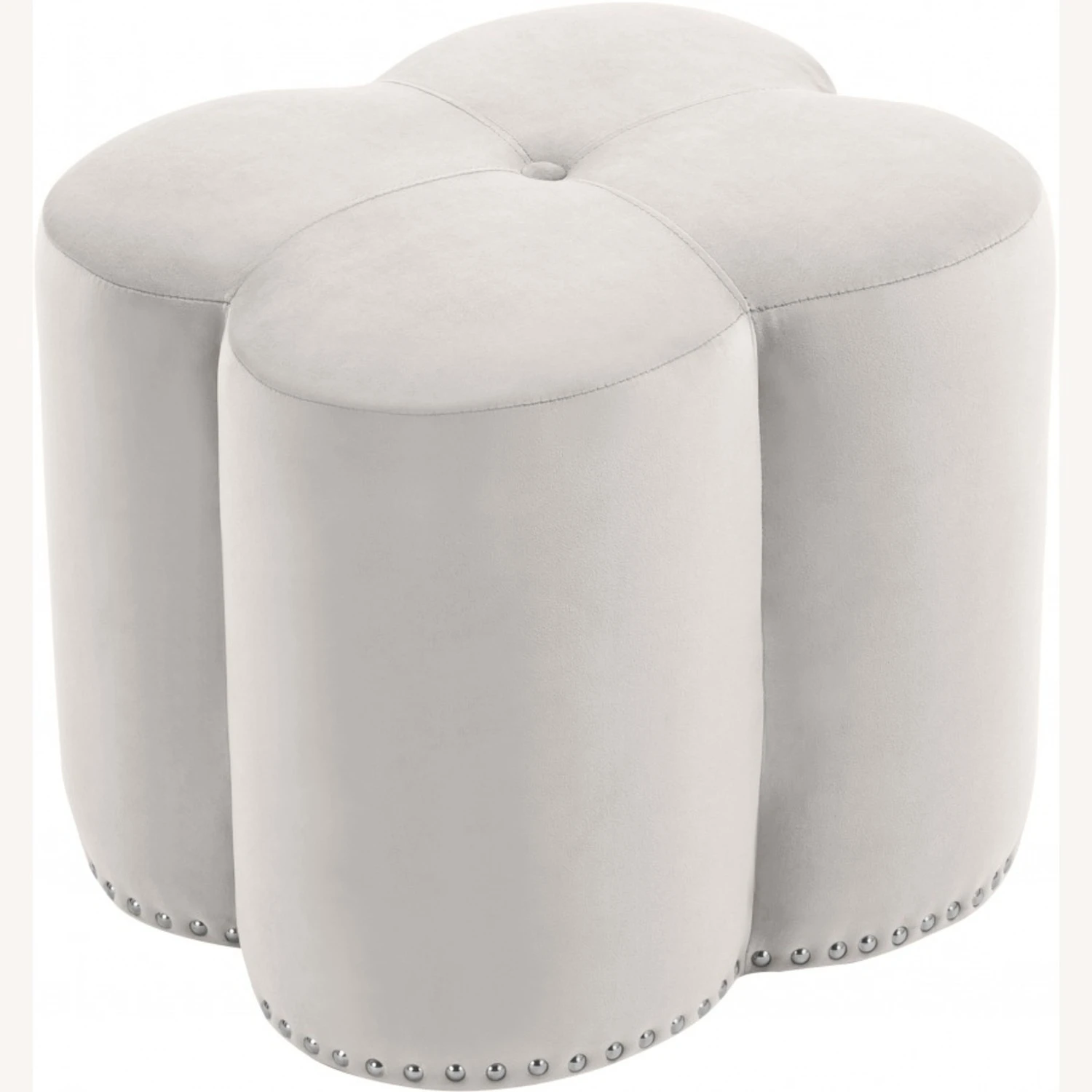 • Beautifully soft cream velvet upholstery covers the exterior of this ottoman, lending it a plush and luxurious look and a velvety feel.