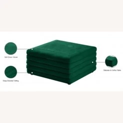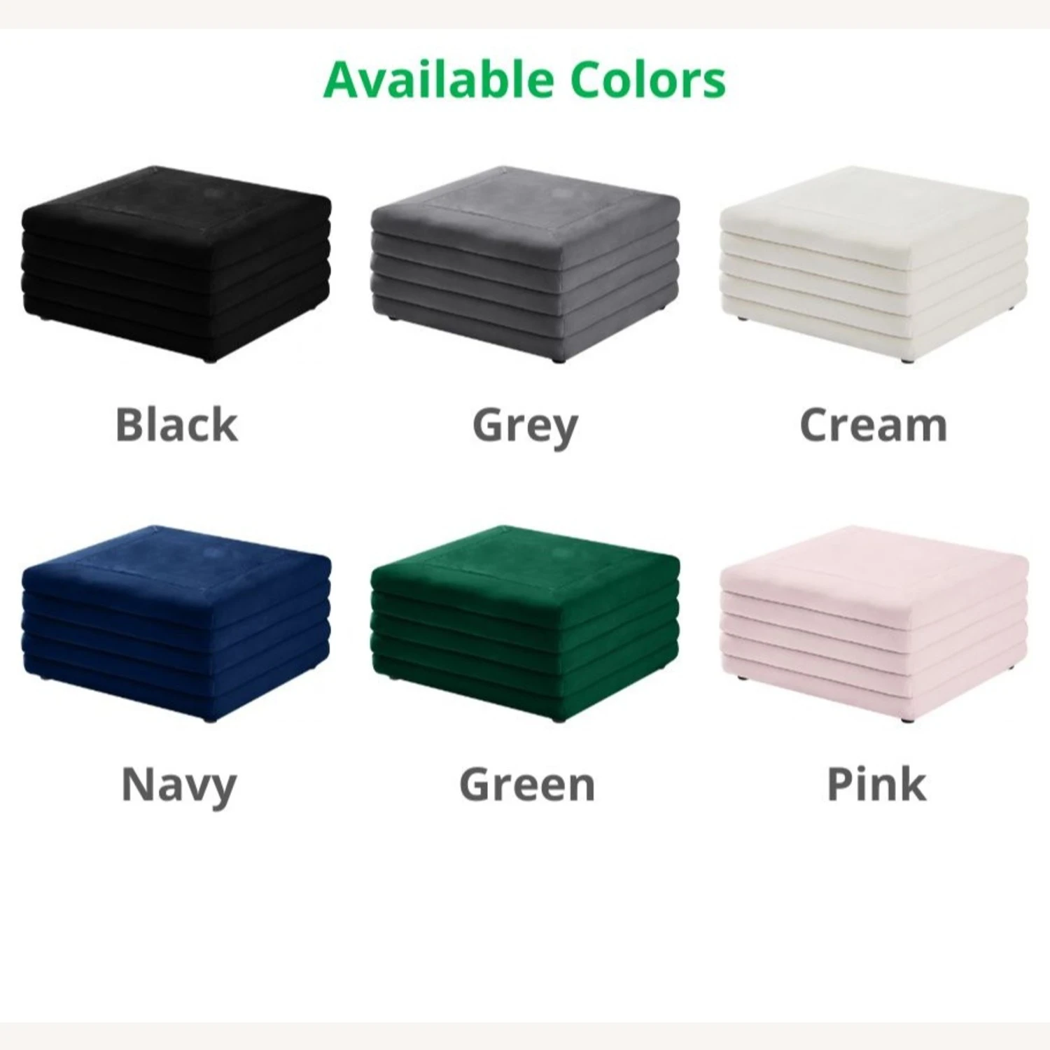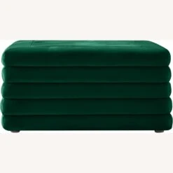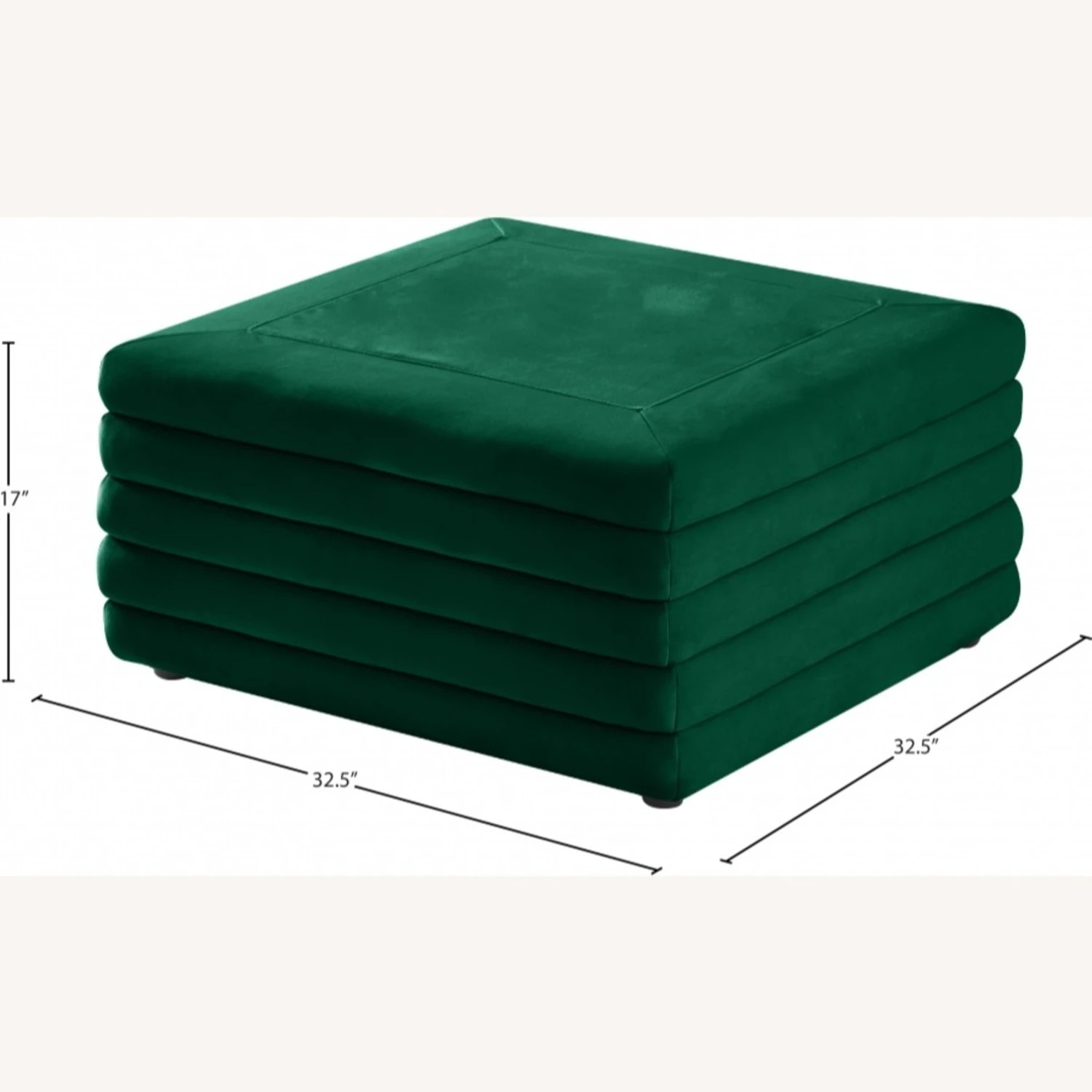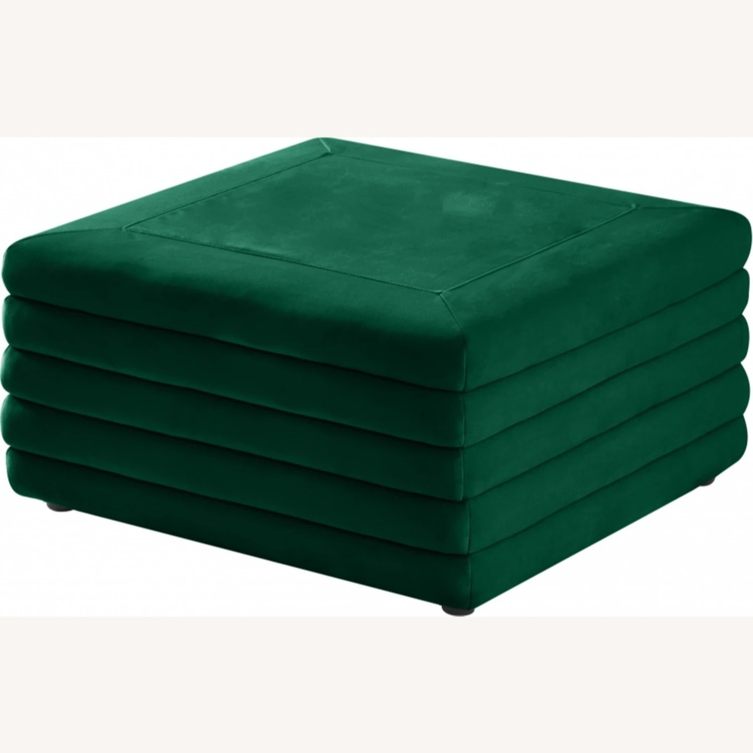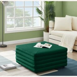 • The soft green velvet upholstery feels great to the touch and adds a sophisticated vibe to the ottoman.