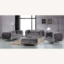 • Rich Velvet covers the plush, comfortable seat, padded with high-density foam and modern tufted design.